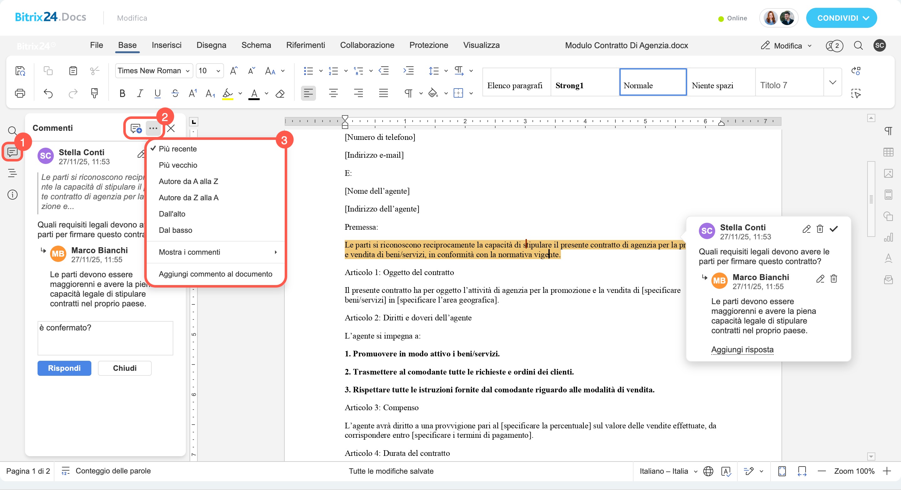 - lavorare con commenti e revisioni,
