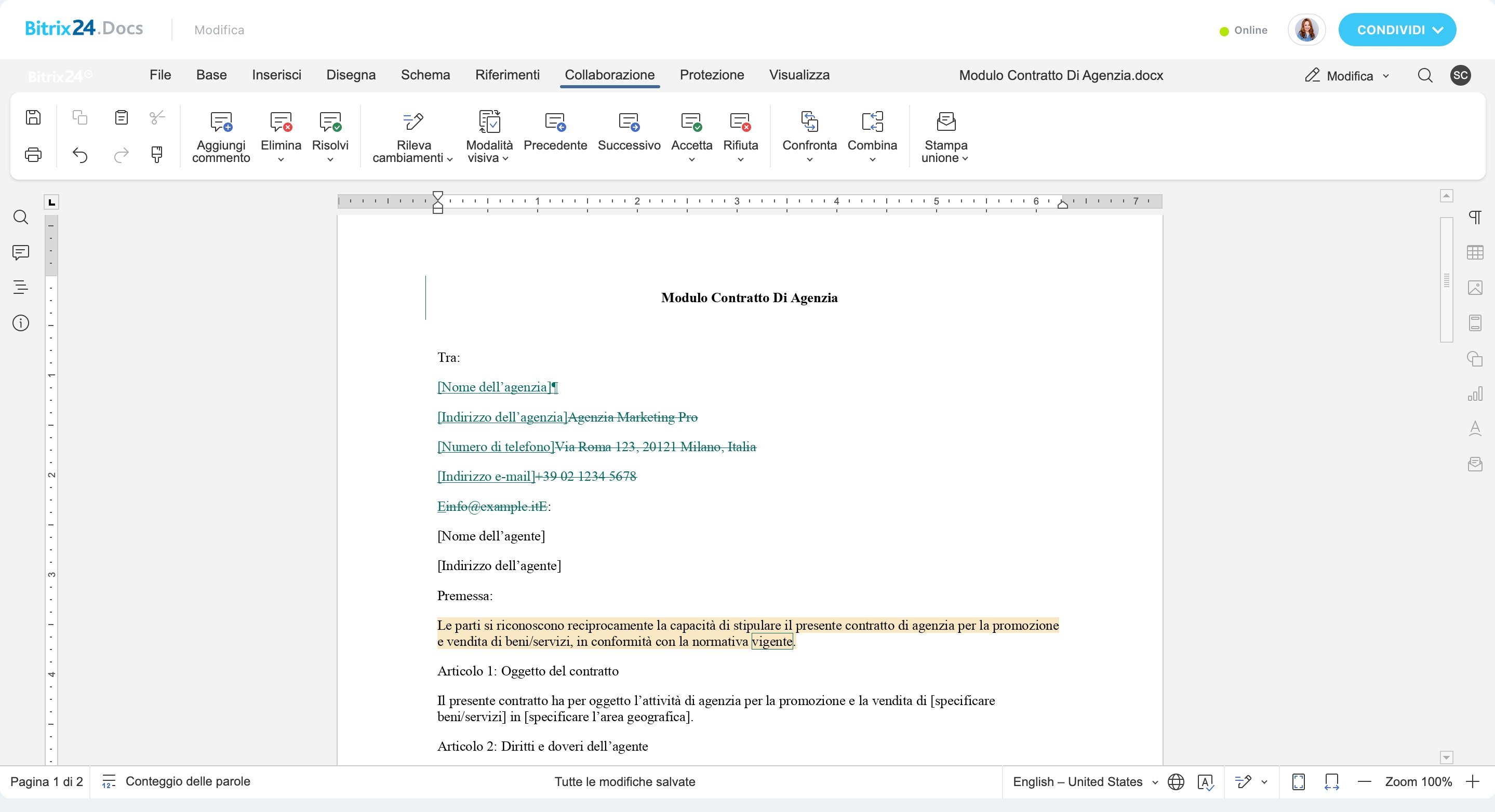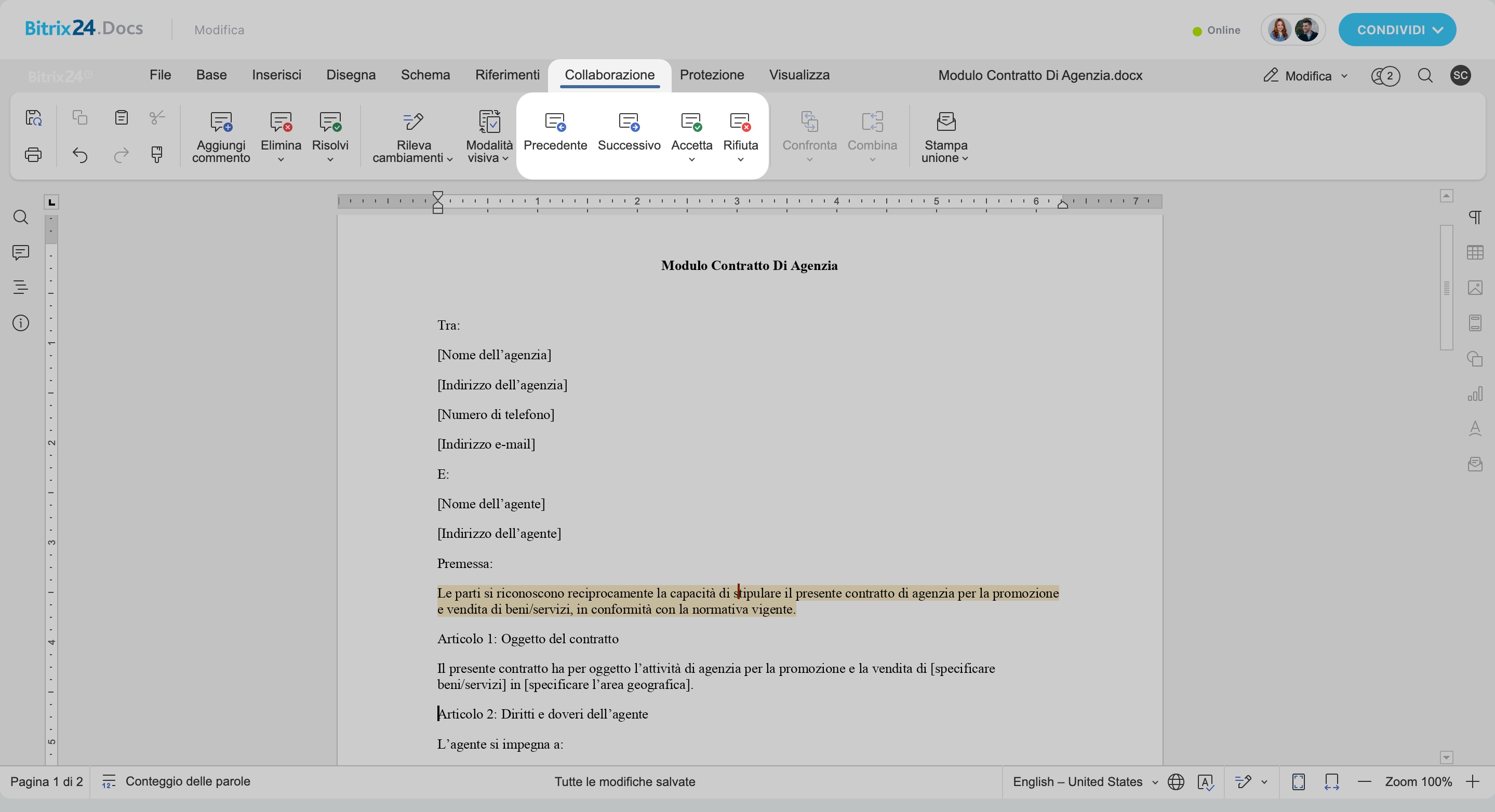 - Accetta/Rifiuta modifiche