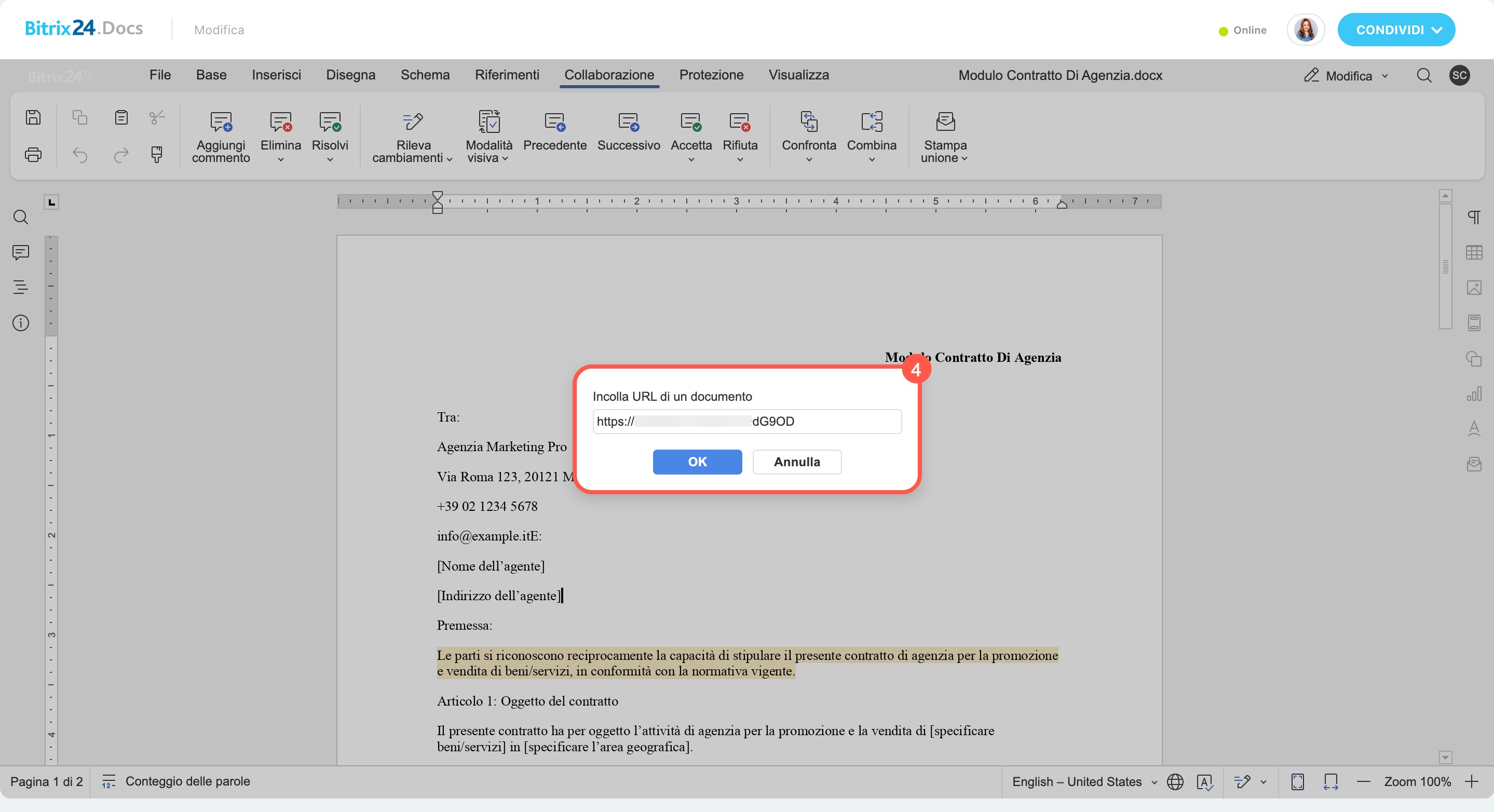 - Inserisci il link al documento condiviso dal collaboratore