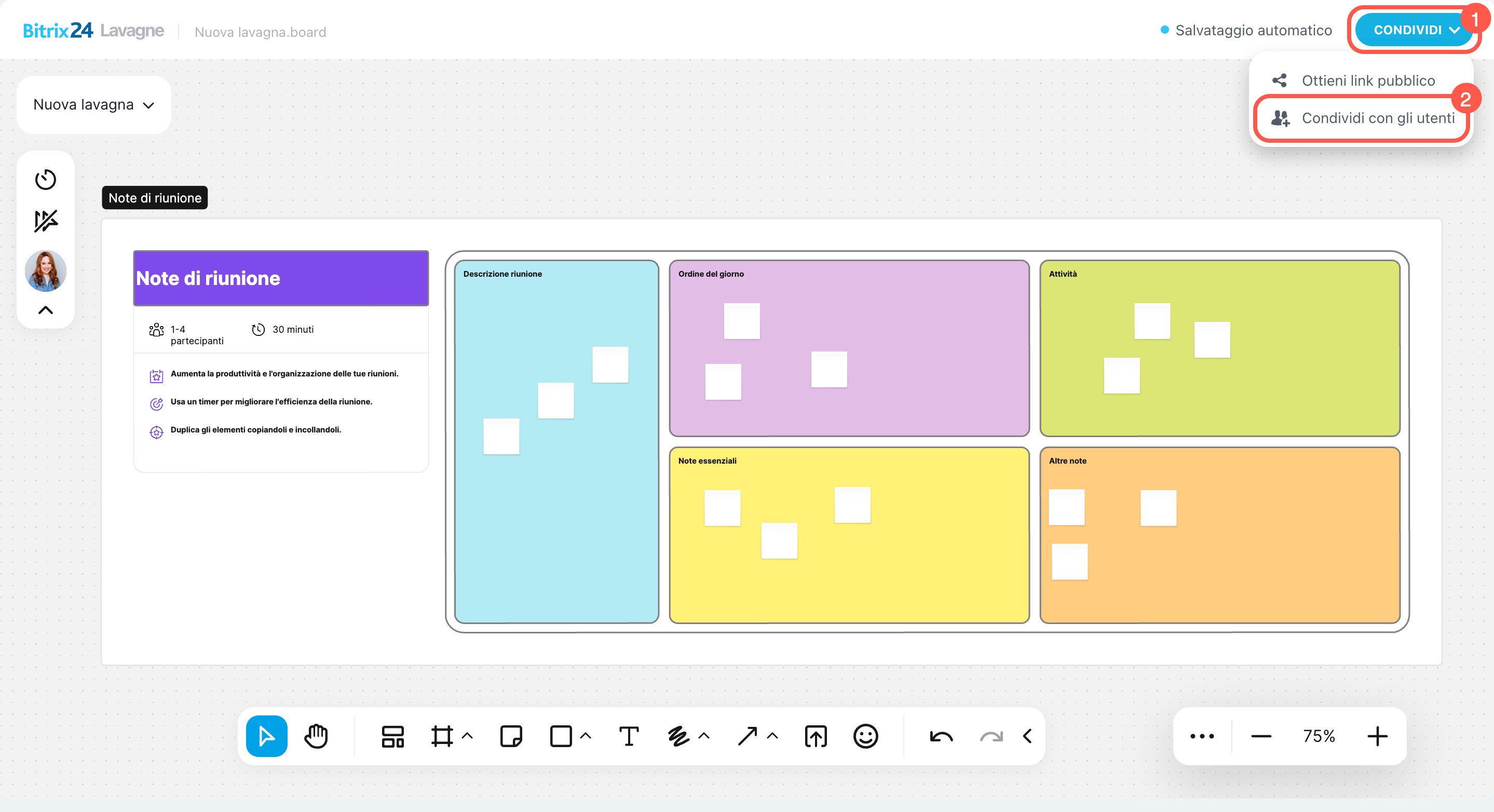 - Le Lavagne di Bitrix24 sono uno spazio per visualizzare idee e collaborare sui progetti.