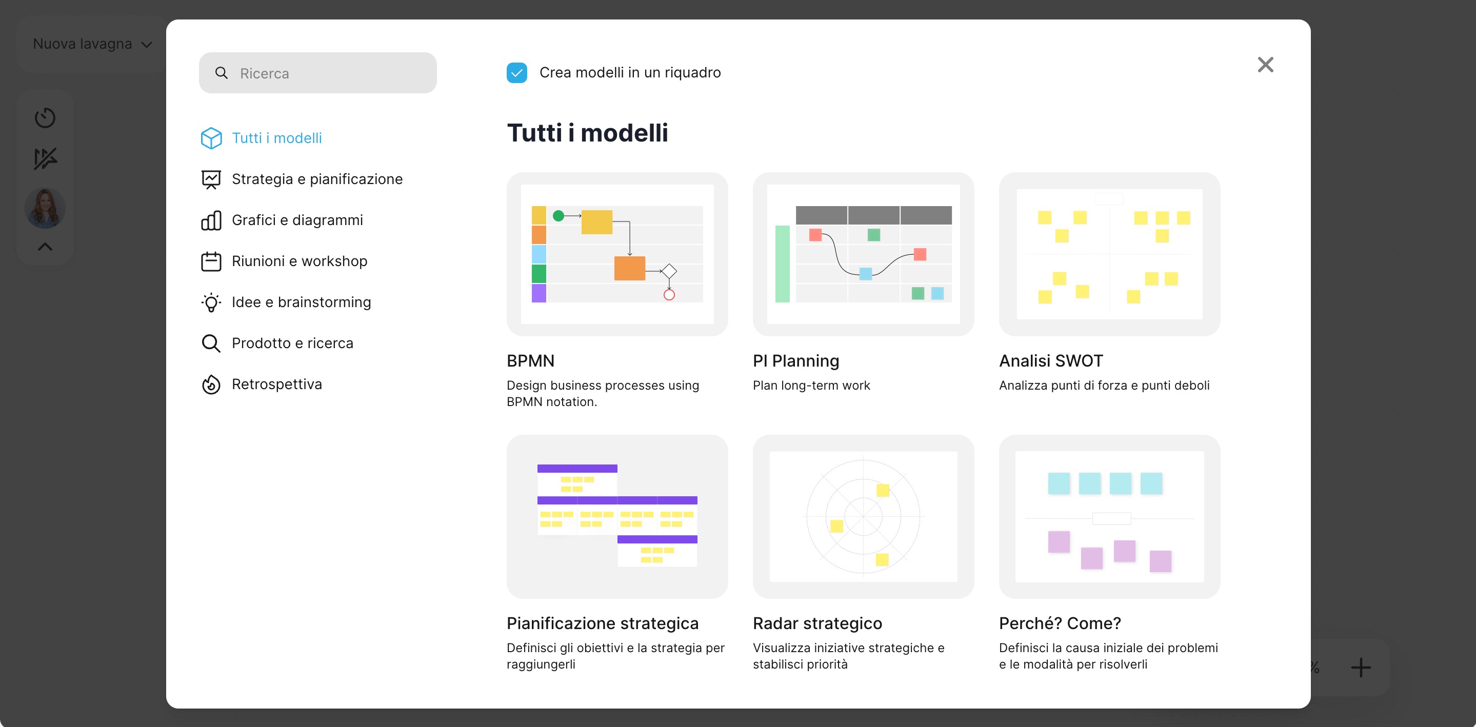 - Per iniziare a lavorare con le Lavagne, puoi utilizzare i modelli pronti: pianificazione strategica e altro.