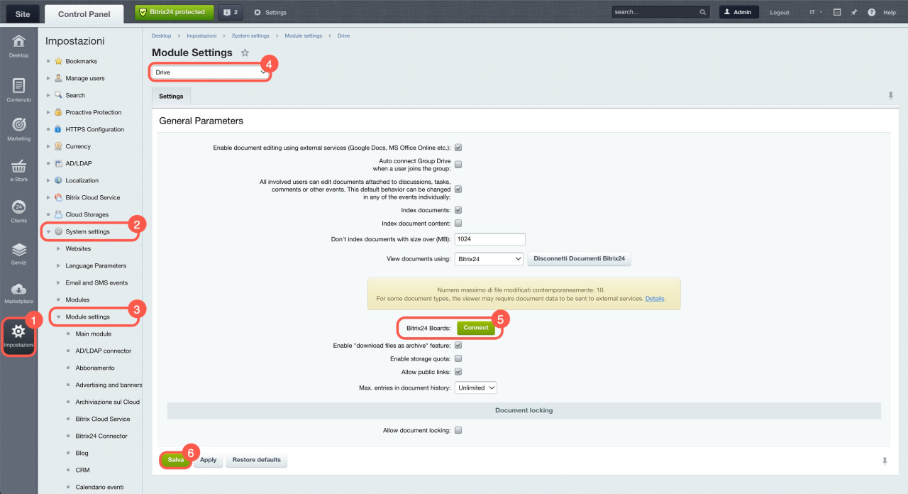 Per utilizzare le Lavagne nella versione On-Premise di Bitrix24, è necessario attivarle.