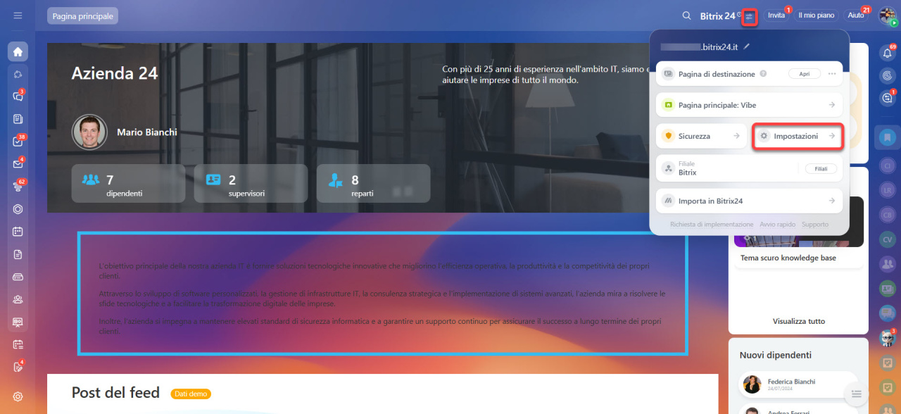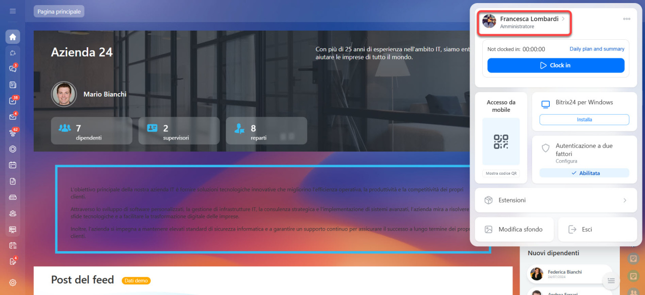 Solo un amministratore di Bitrix24 può cambiare il nome o aggiungere un logo.
