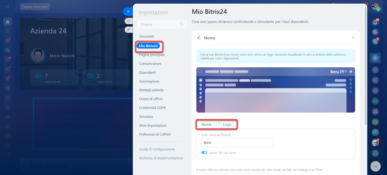 Cambia nome e logo di Bitrix24