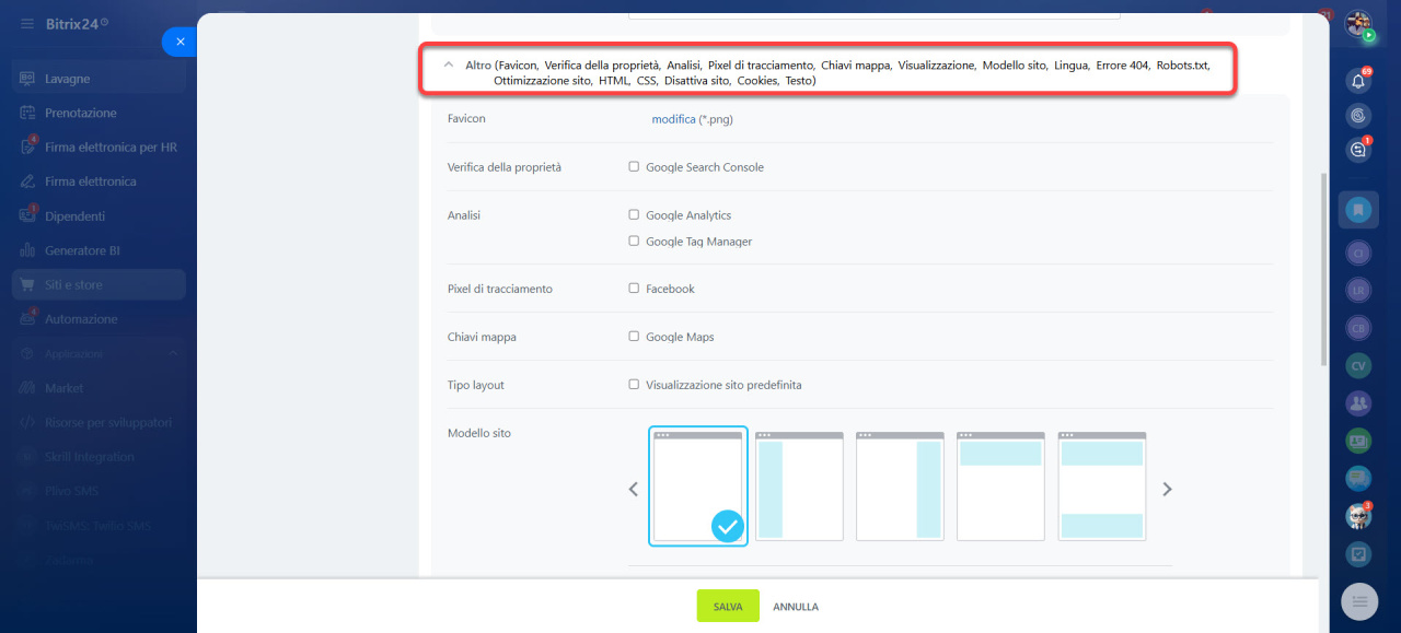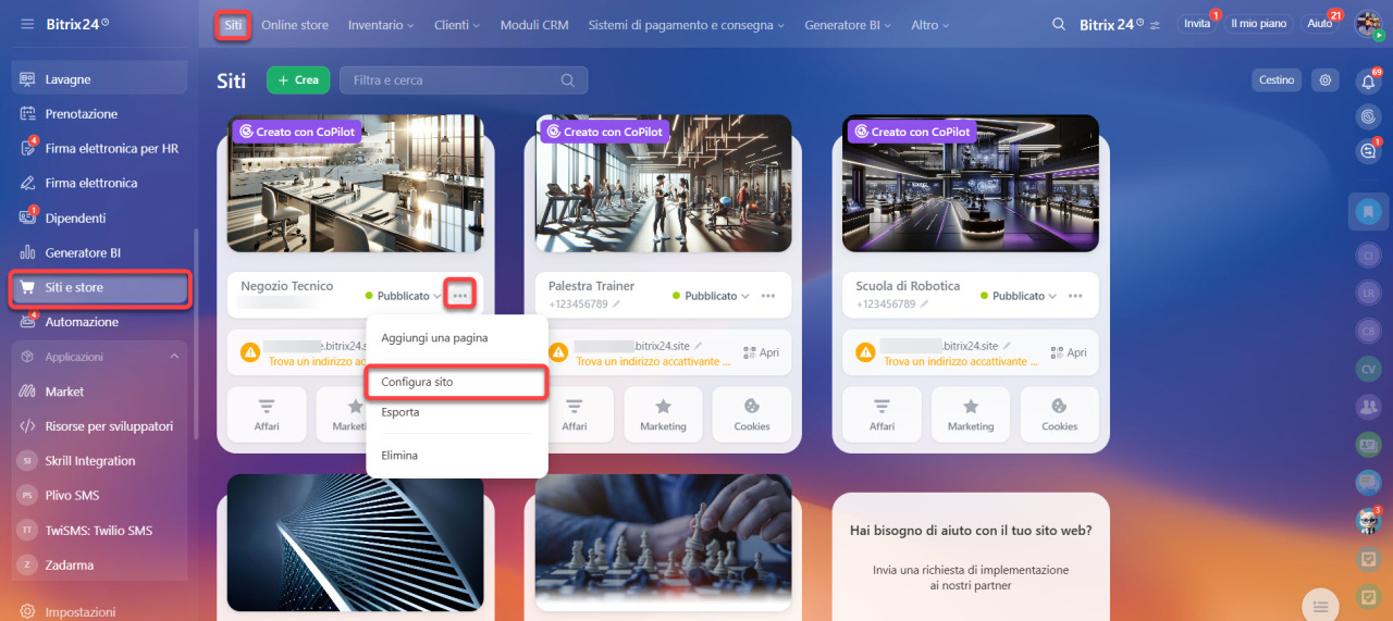 Crea e configura il tuo sito Bitrix24