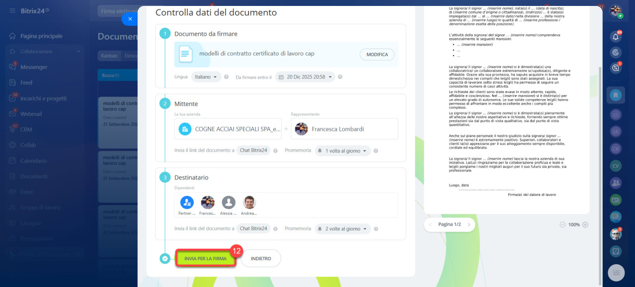 Per inviare un documento per la firma a un gruppo di dipendenti: