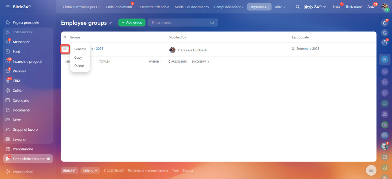 Crea un gruppo di dipendenti nella Firma elettronica per HR