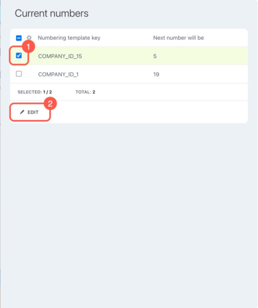 Si aprirà una finestra a destra, mostrando l'elenco dei prossimi numeri per ciascuna azienda. La colonna Chiave del modello di numerazione mostra gli ID delle tue aziende. Company_ID_