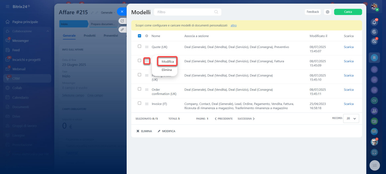 Puoi creare e modificare questi modelli sia nelle impostazioni CRM che nelle impostazioni dei modelli di documento.