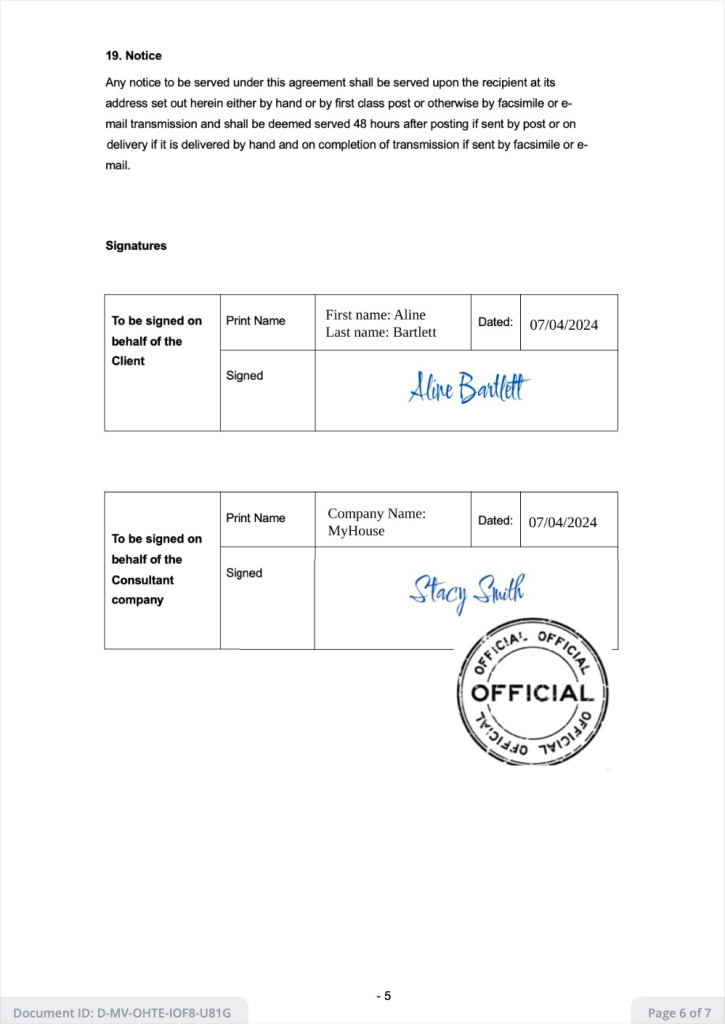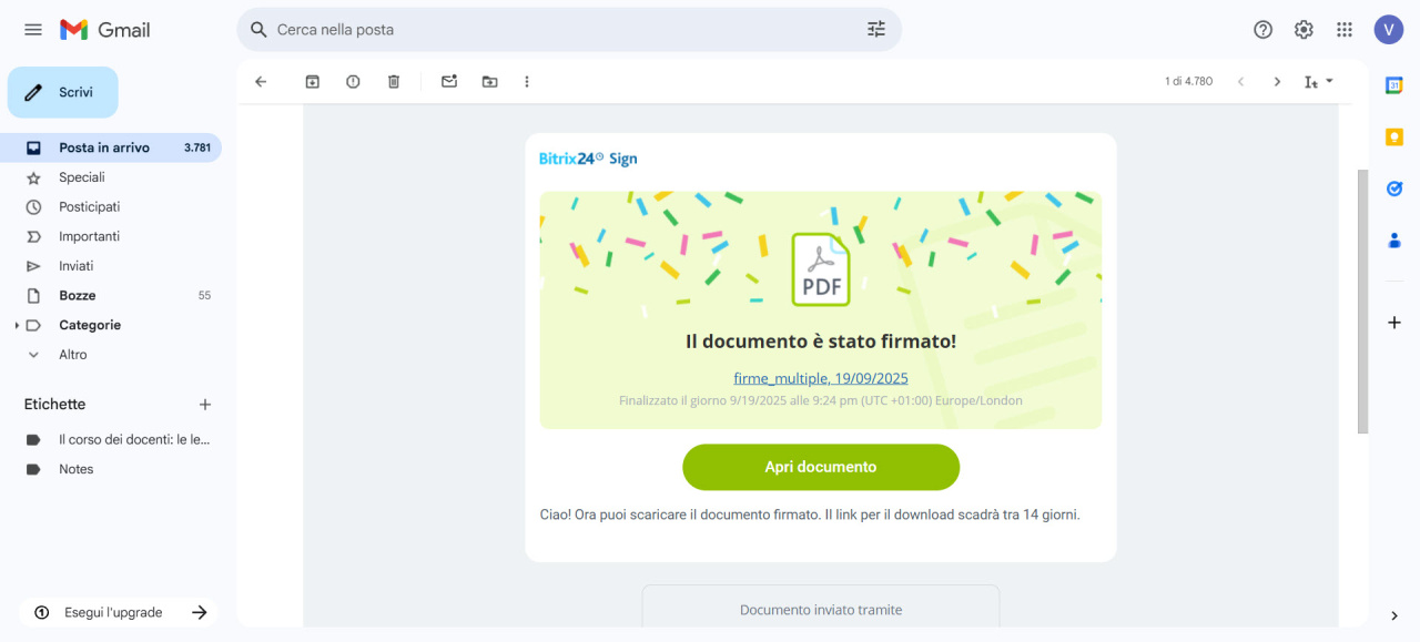 Dopo la firma, il documento può essere scaricato. Il link al documento firmato è valido per 14 giorni.