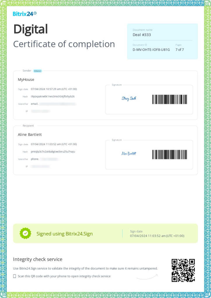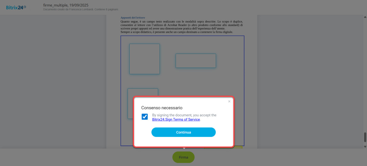 Firma elettronica Bitrix24: verifica l'integrità del documento