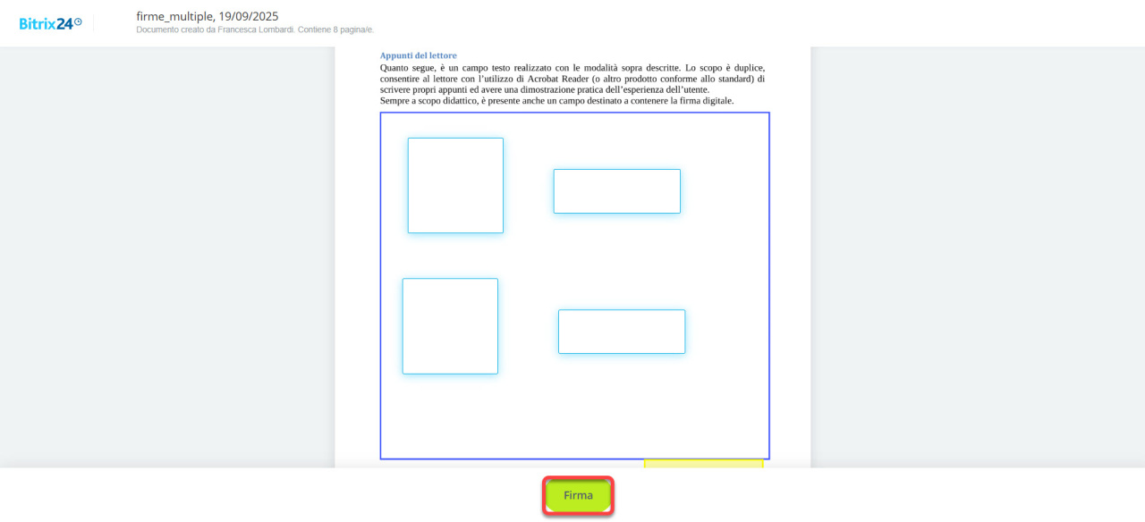 Il processo di firma dei documenti con Bitrix24 Firma elettronica include diversi passaggi: