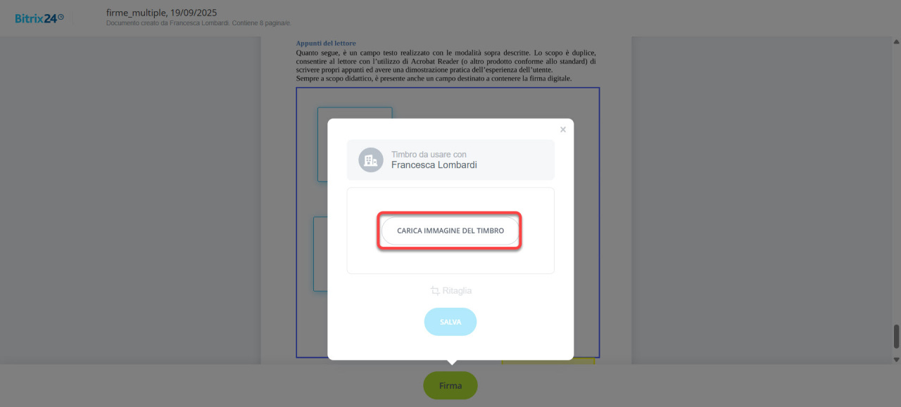 - Carica immagine: aggiungi un'immagine della tua firma.