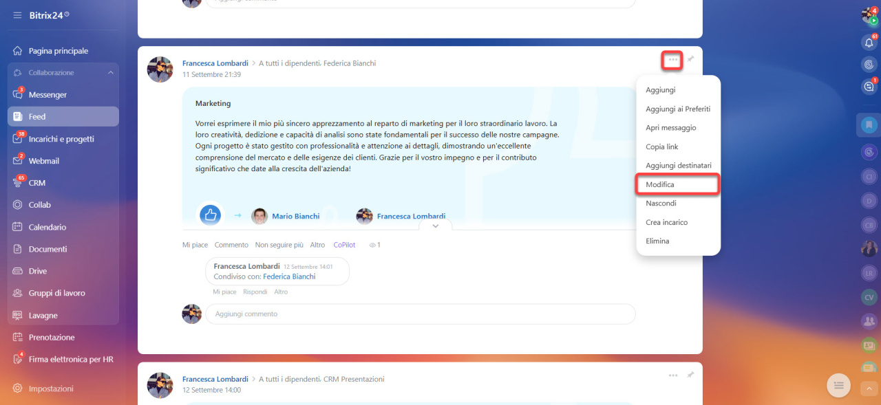 - Fai clic su Tre punti (…) sul messaggio pubblicato e seleziona Modifica.