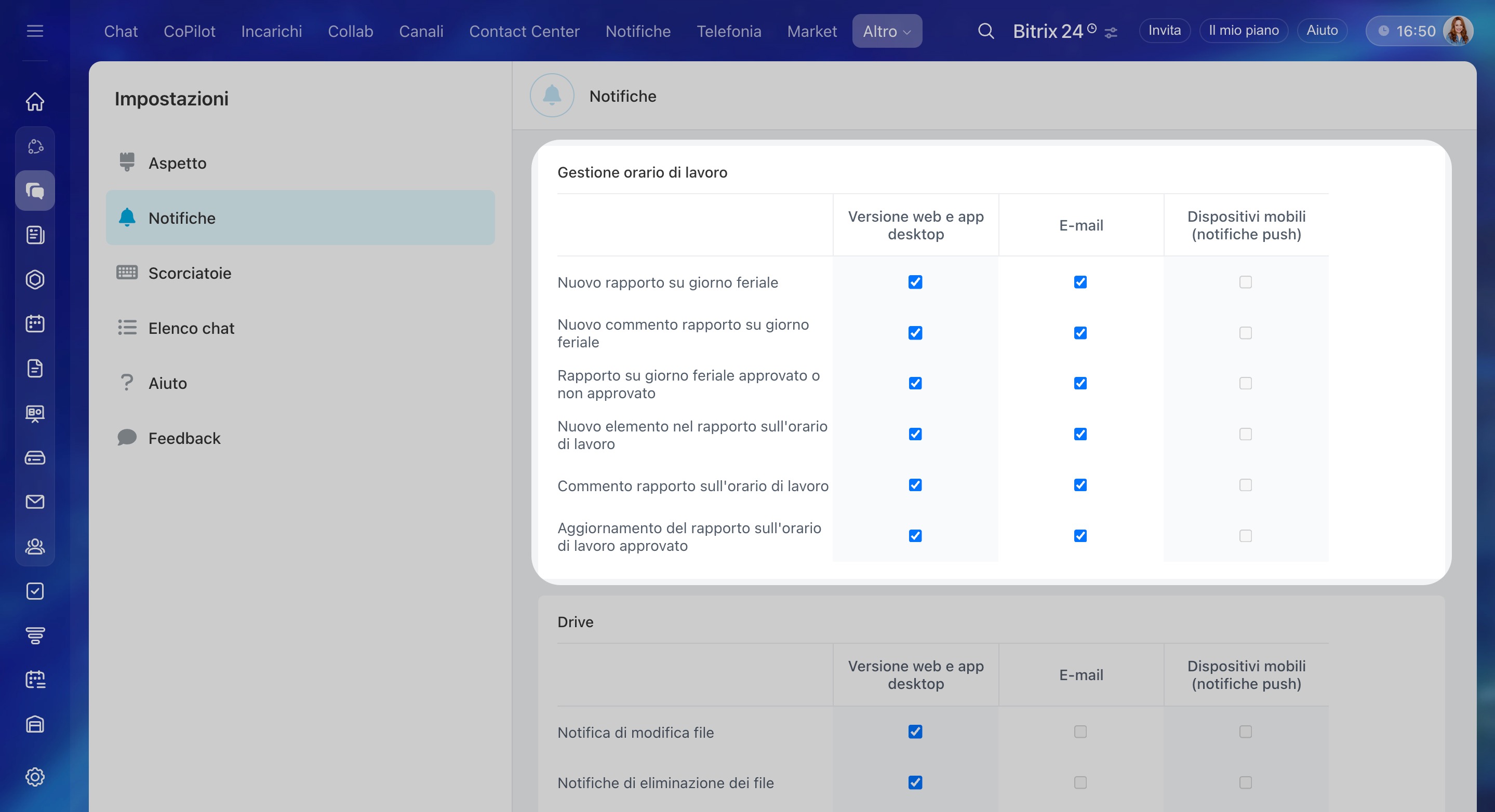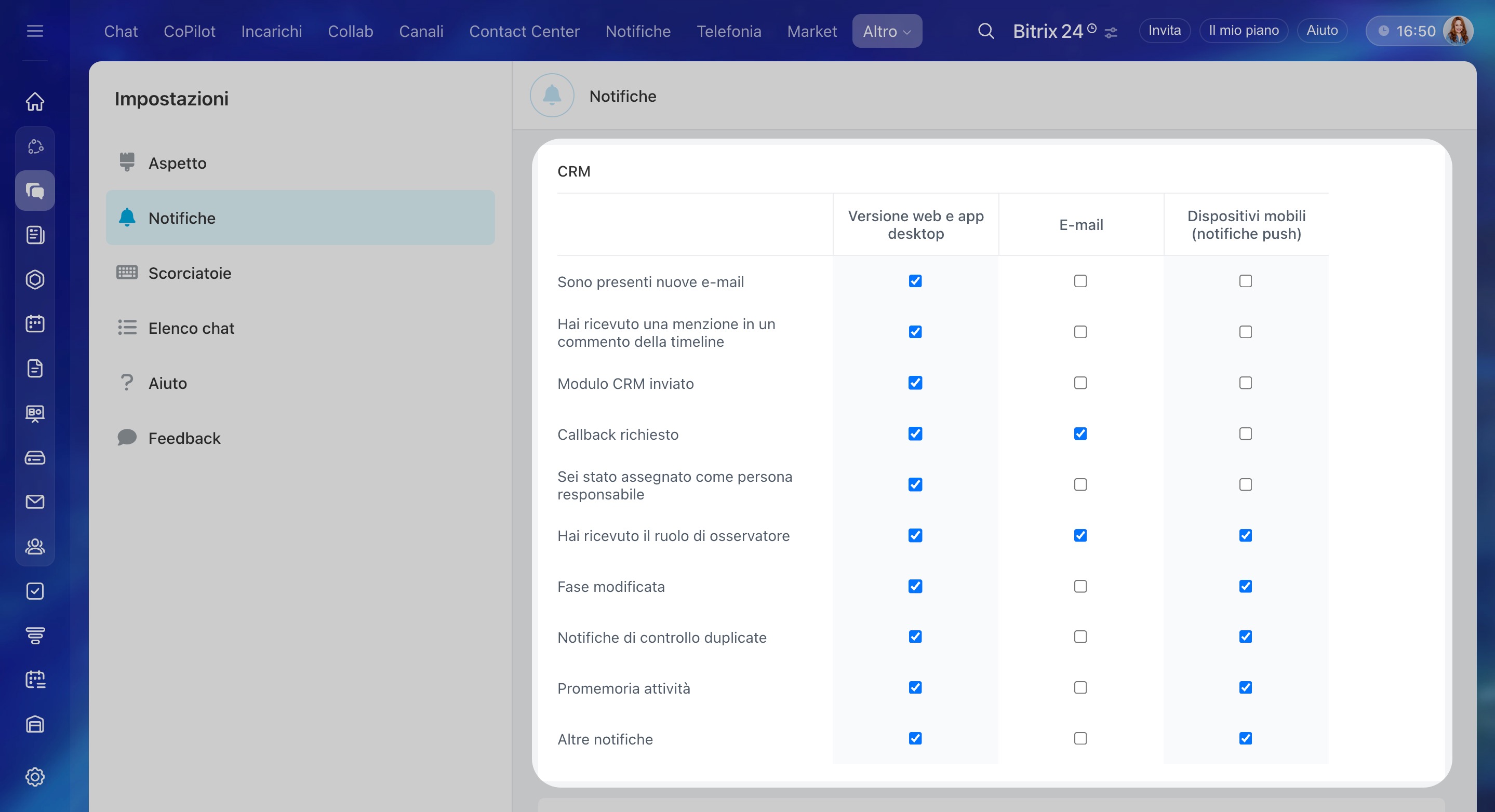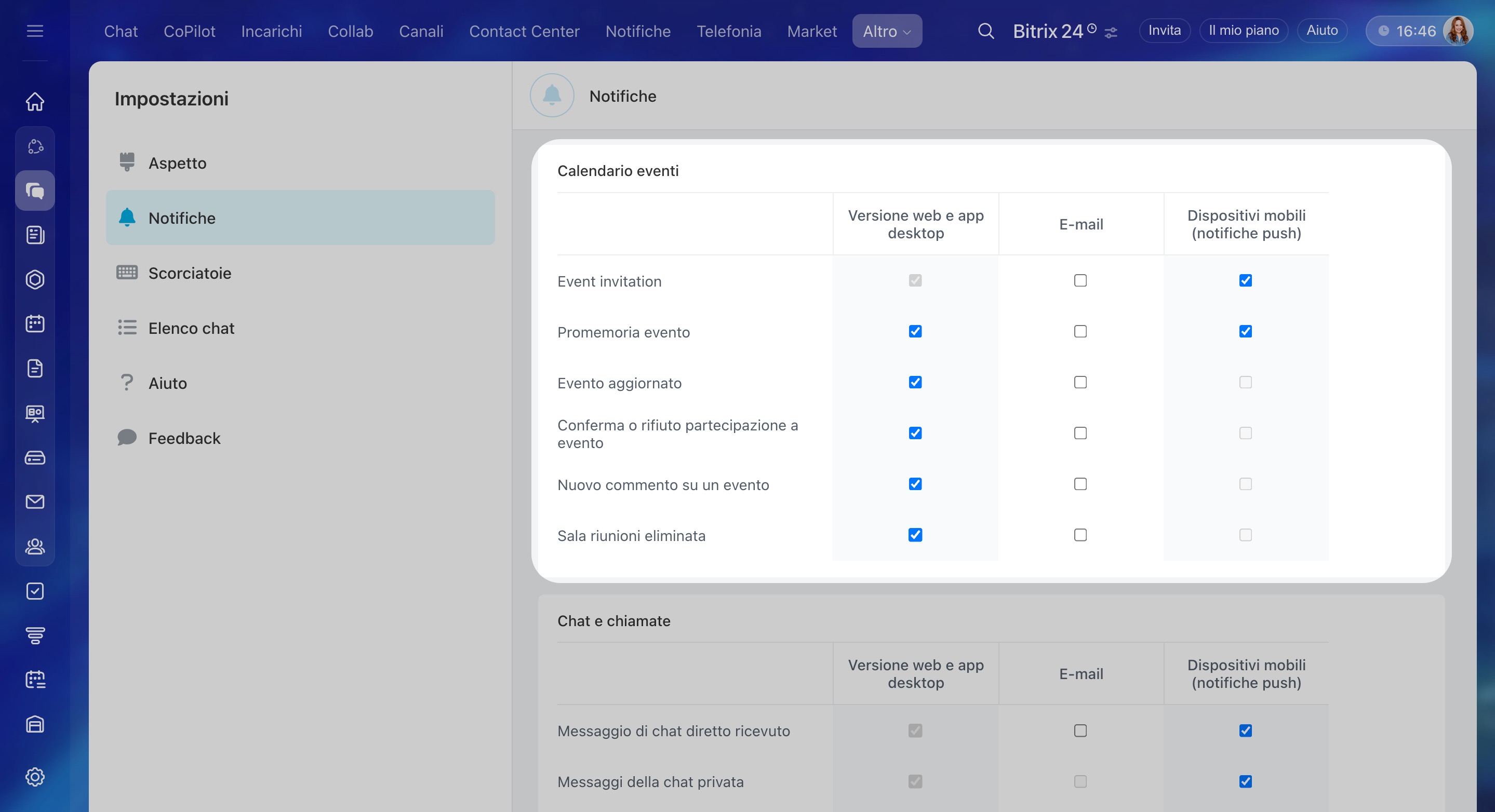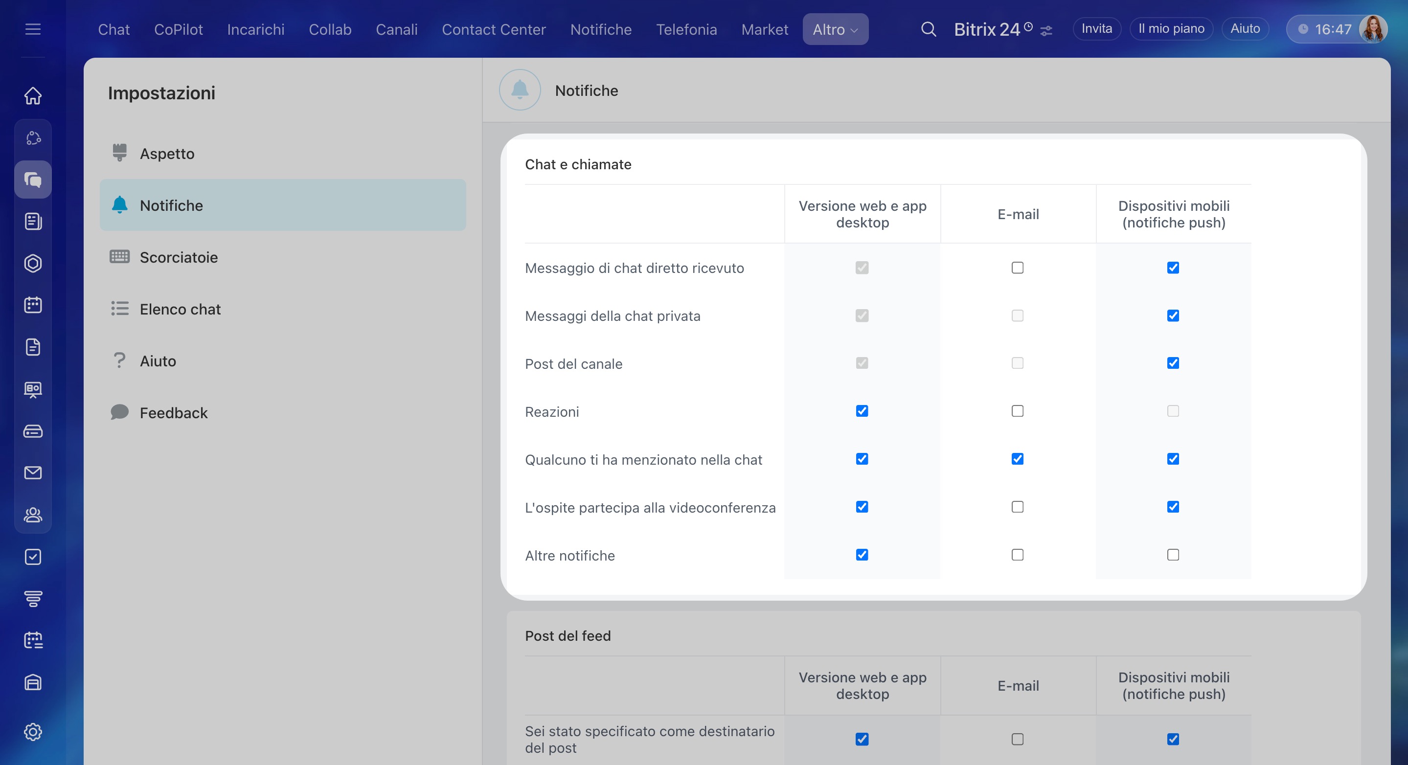 - Avanzata: le notifiche possono essere personalizzate per ciascun strumento di Bitrix24 individualmente.