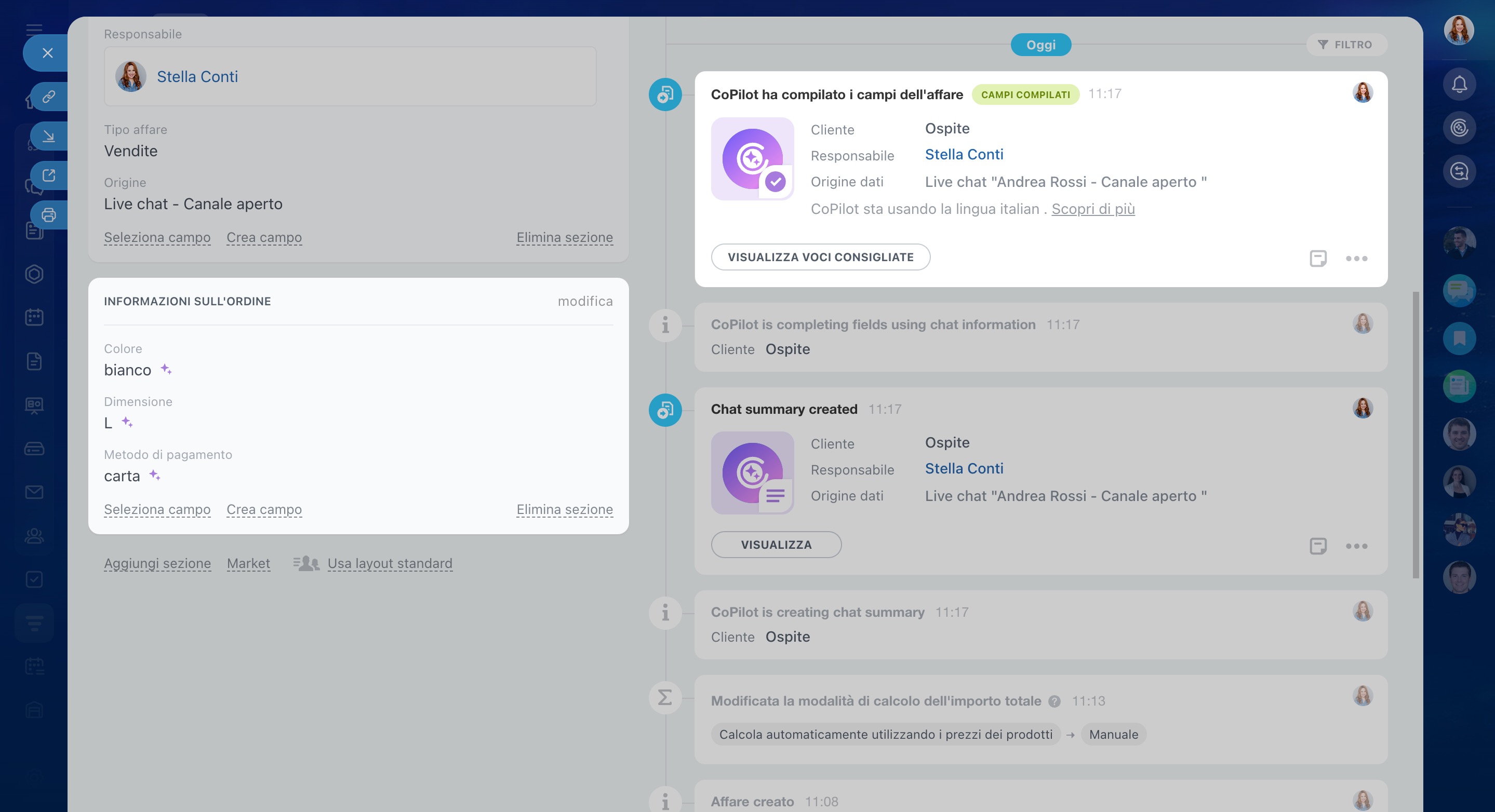 - CoPilot compila automaticamente i campi vuoti della scheda CRM con i dati della chat.