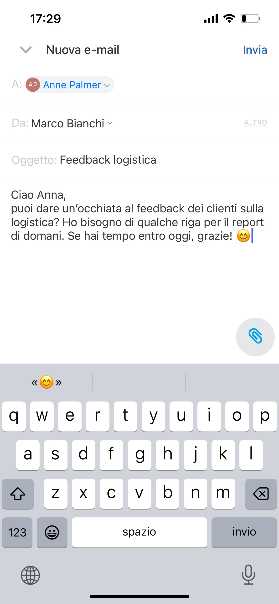 - Dopo il collegamento puoi leggere, rispondere, inoltrare, creare incarichi, eventi e schede CRM.