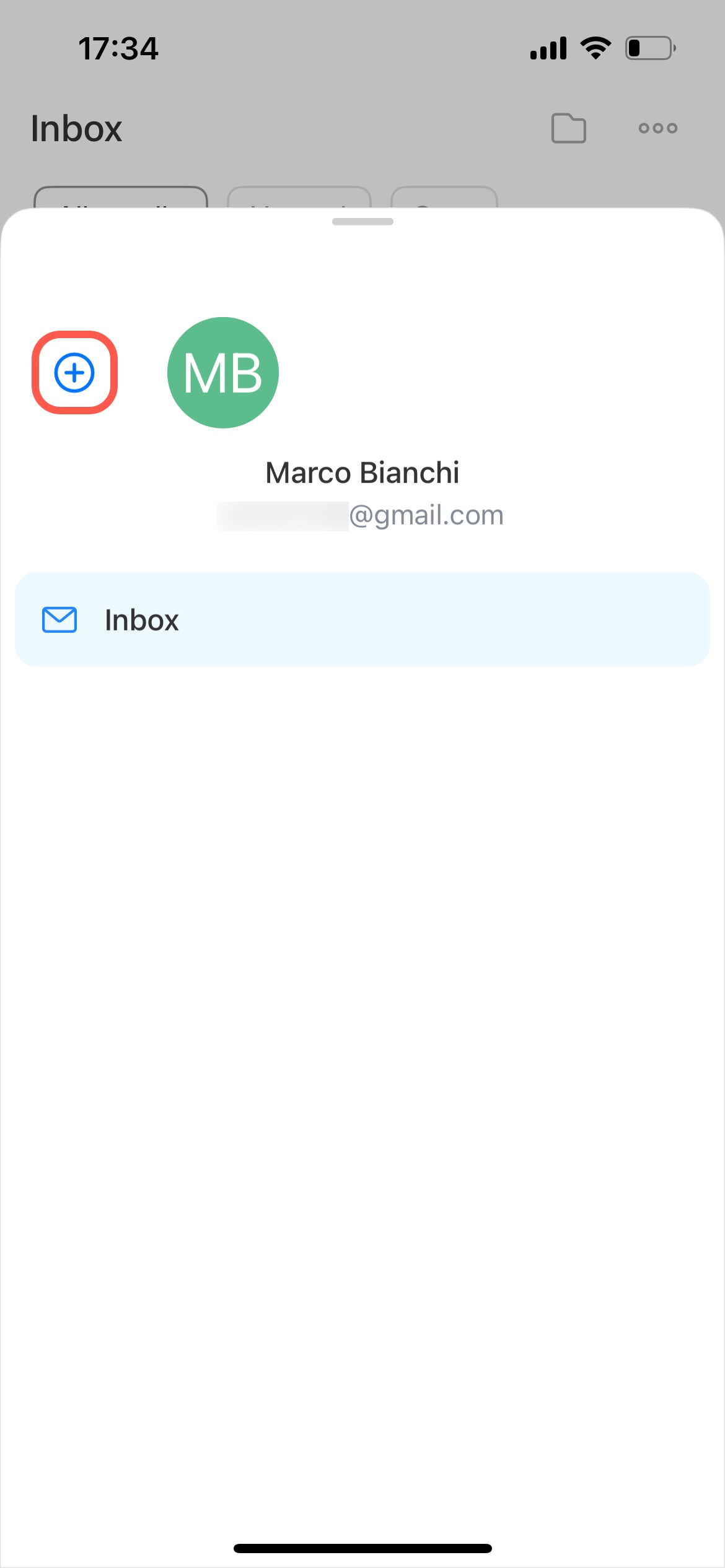 Per collegare un'altra casella di posta, tocca l'icona
