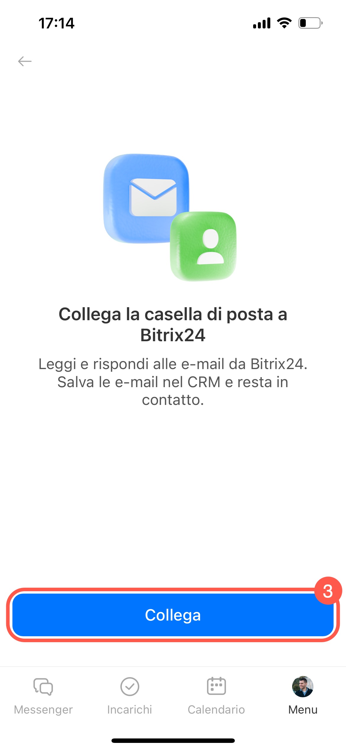 - Puoi collegare la tua e-mail nell'app mobile di Bitrix24 e gestirla come dal computer.