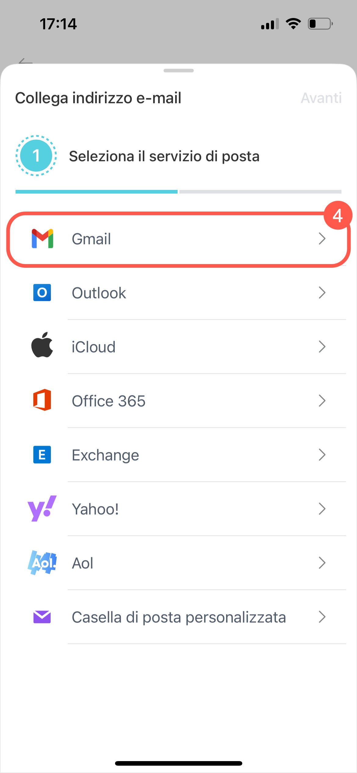 - Seleziona il servizio e-mail che desideri collegare.