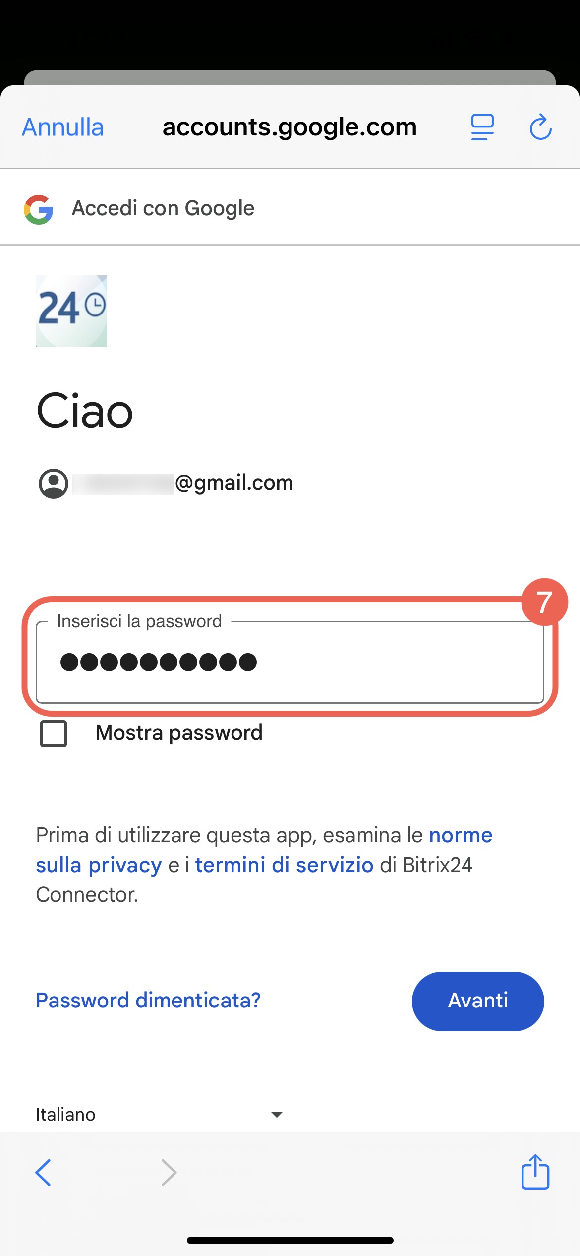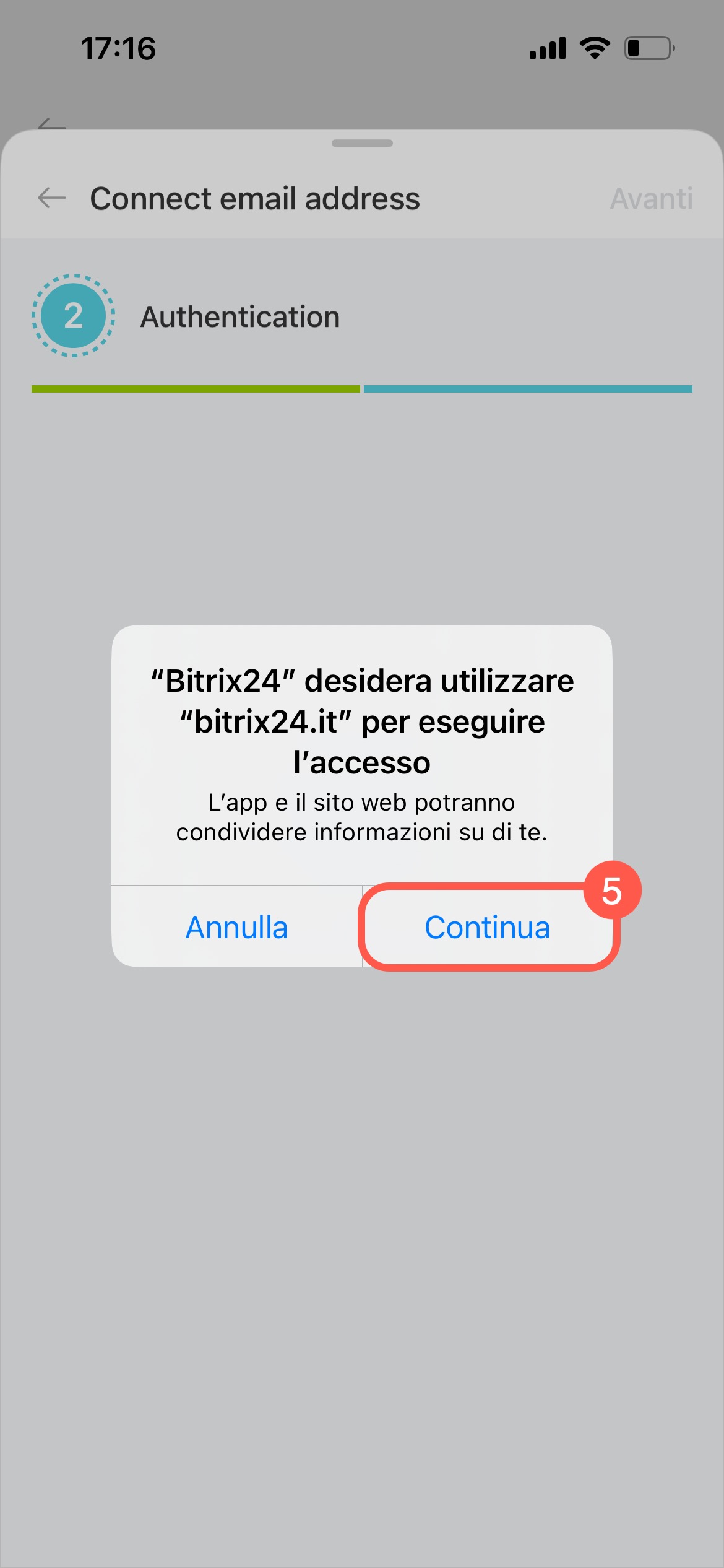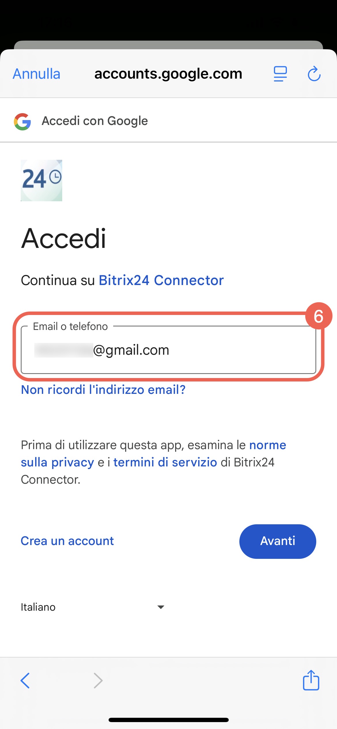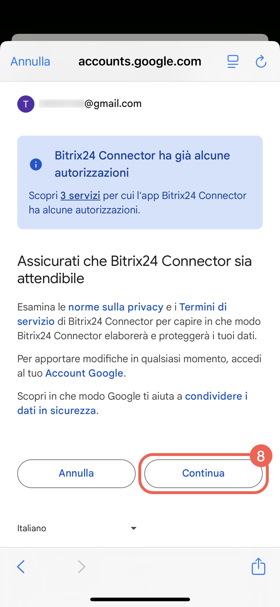 - Tocca Continua: si aprirà una finestra di autorizzazione per il servizio selezionato.