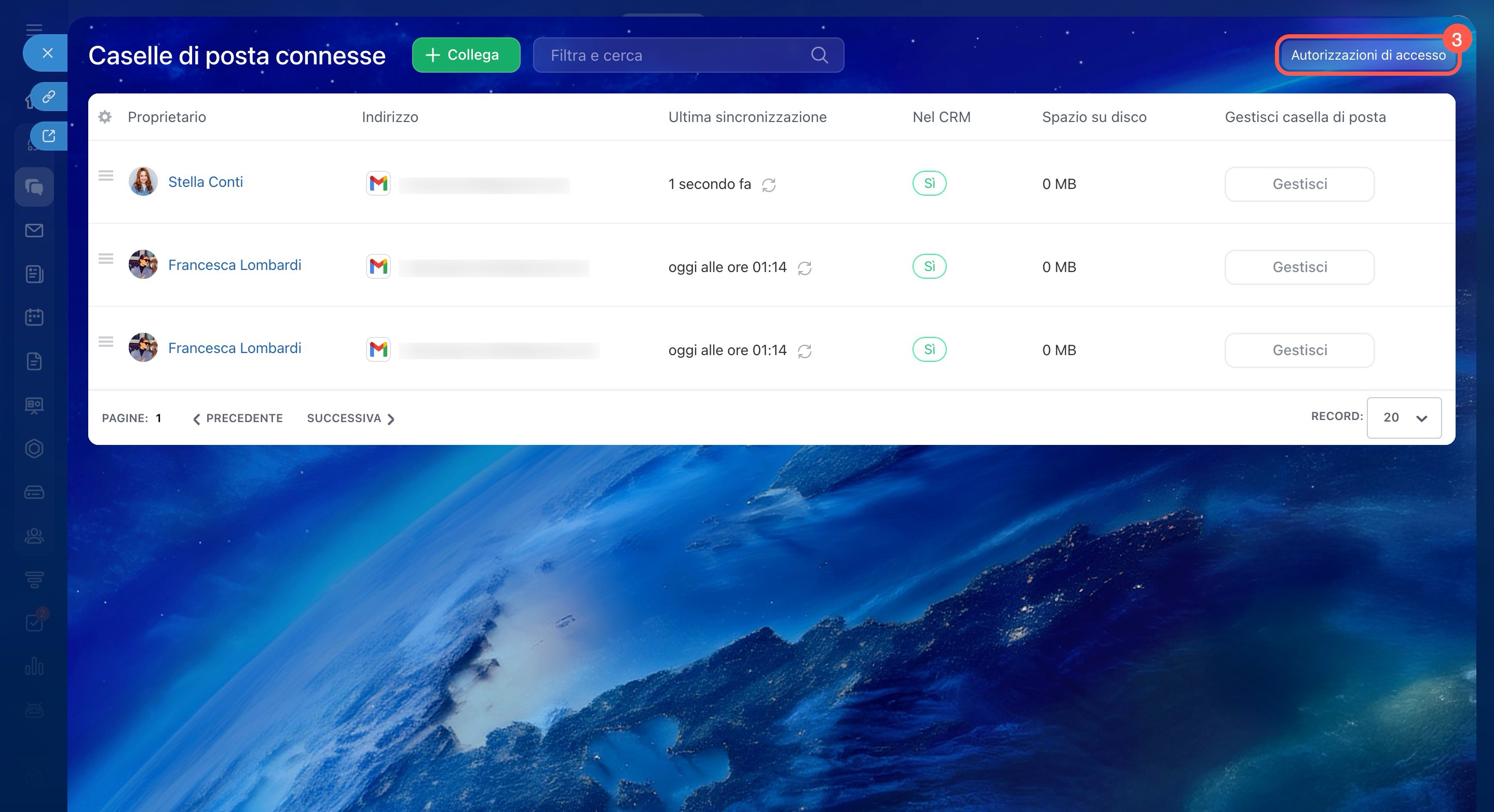 - Visualizza caselle di posta collegate: vedere quali caselle sono attive e a chi appartengono;