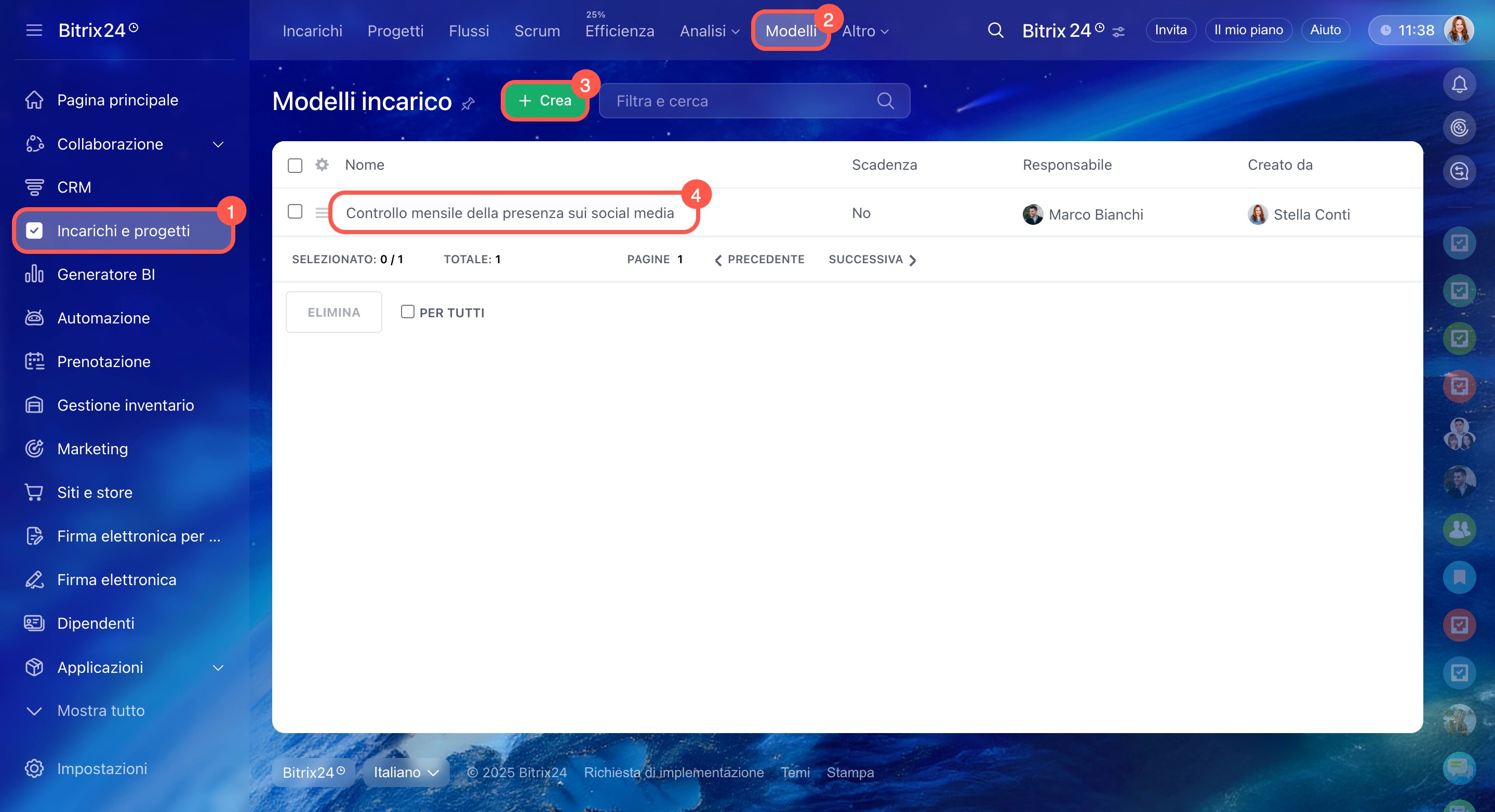 - Vai alla sezione Incarichi e progetti > Modelli.