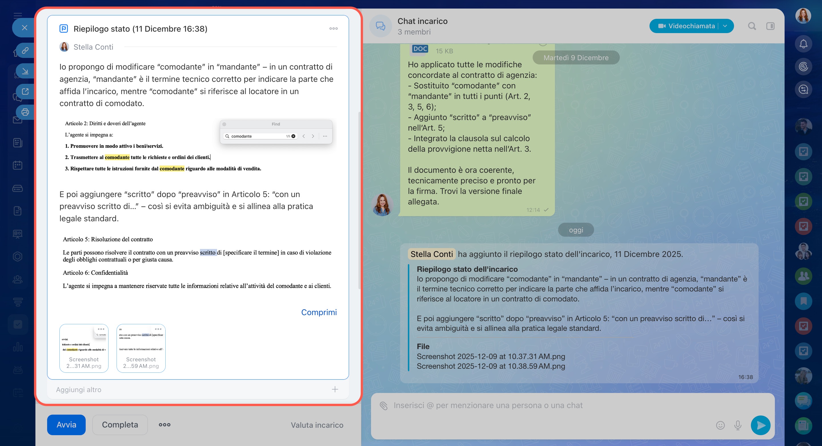 Per visualizzare tutte le modifiche, apri l’elenco delle chat degli incarichi: lì troverai tutti gli aggiornamenti relativi agli incarichi.