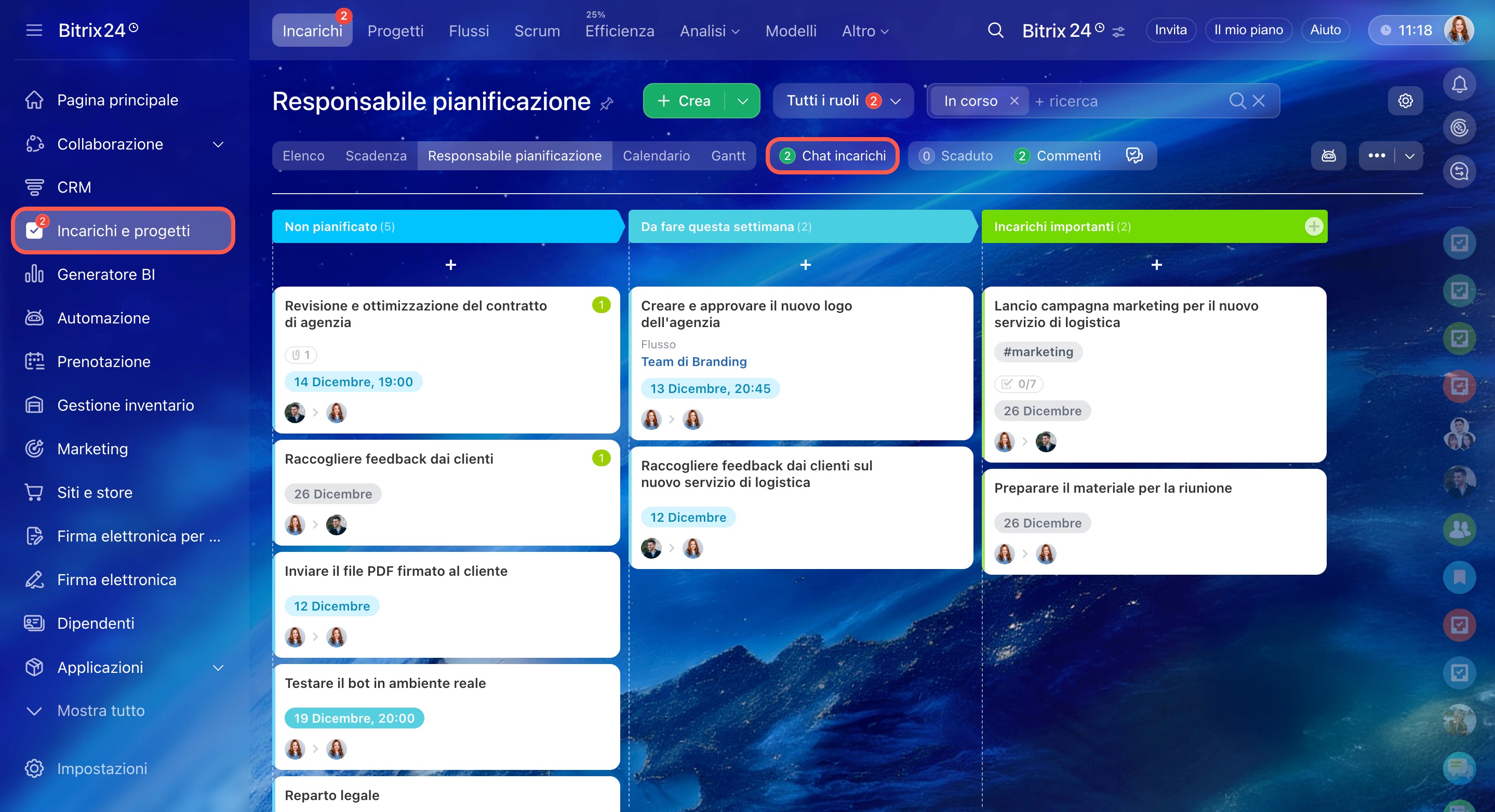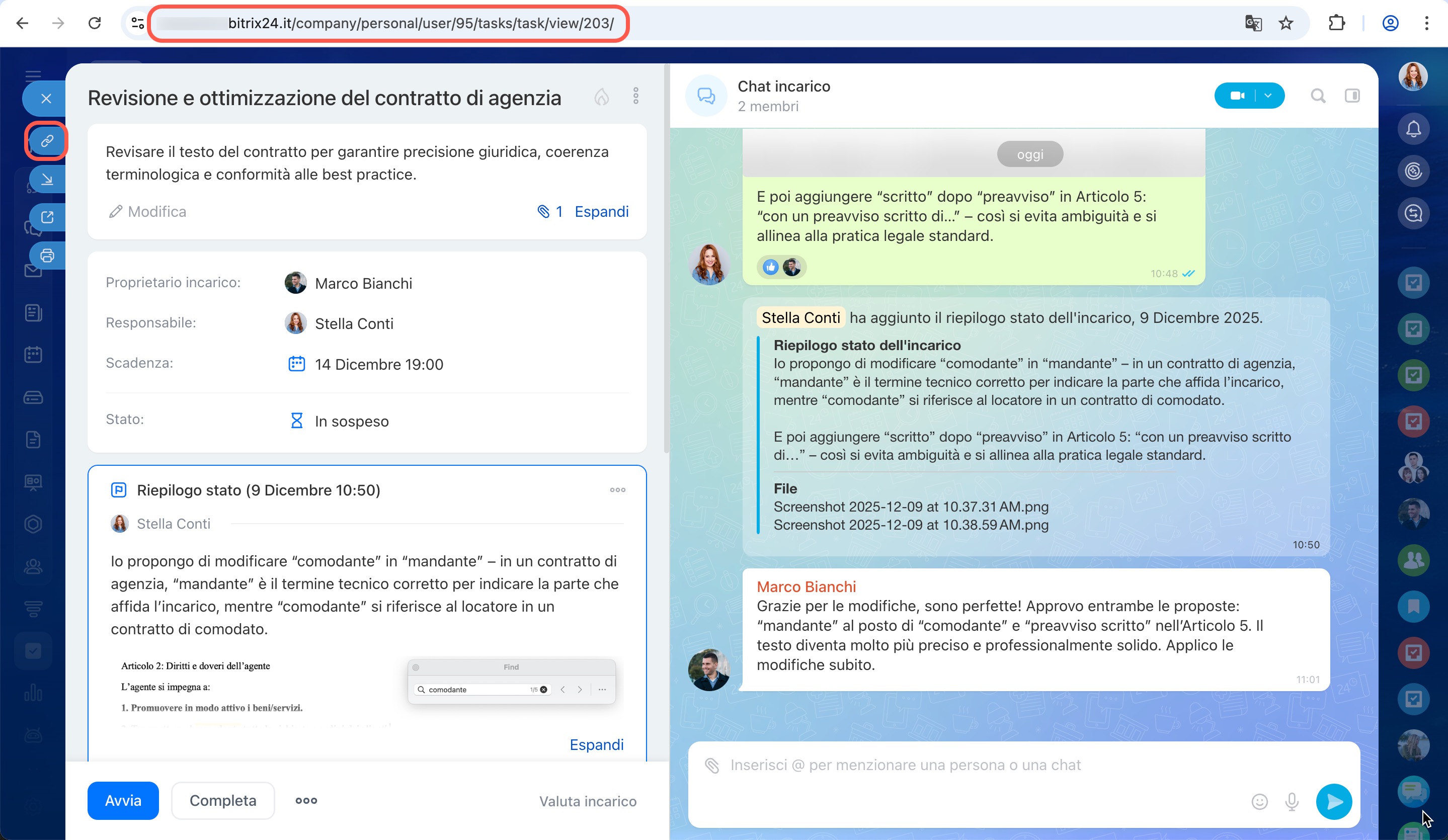 I nuovi incarichi di Bitrix24 non sono più una semplice scheda con campi e commenti, ma uno spazio di lavoro completo in cui si svolgono discussioni, azioni e risultati. La chat dell’incarico è diventata il centro della comunicazione: il team può chiamarsi, scambiarsi file e prendere decisioni senza perdere il contesto né dover passare da uno strumento all'altro