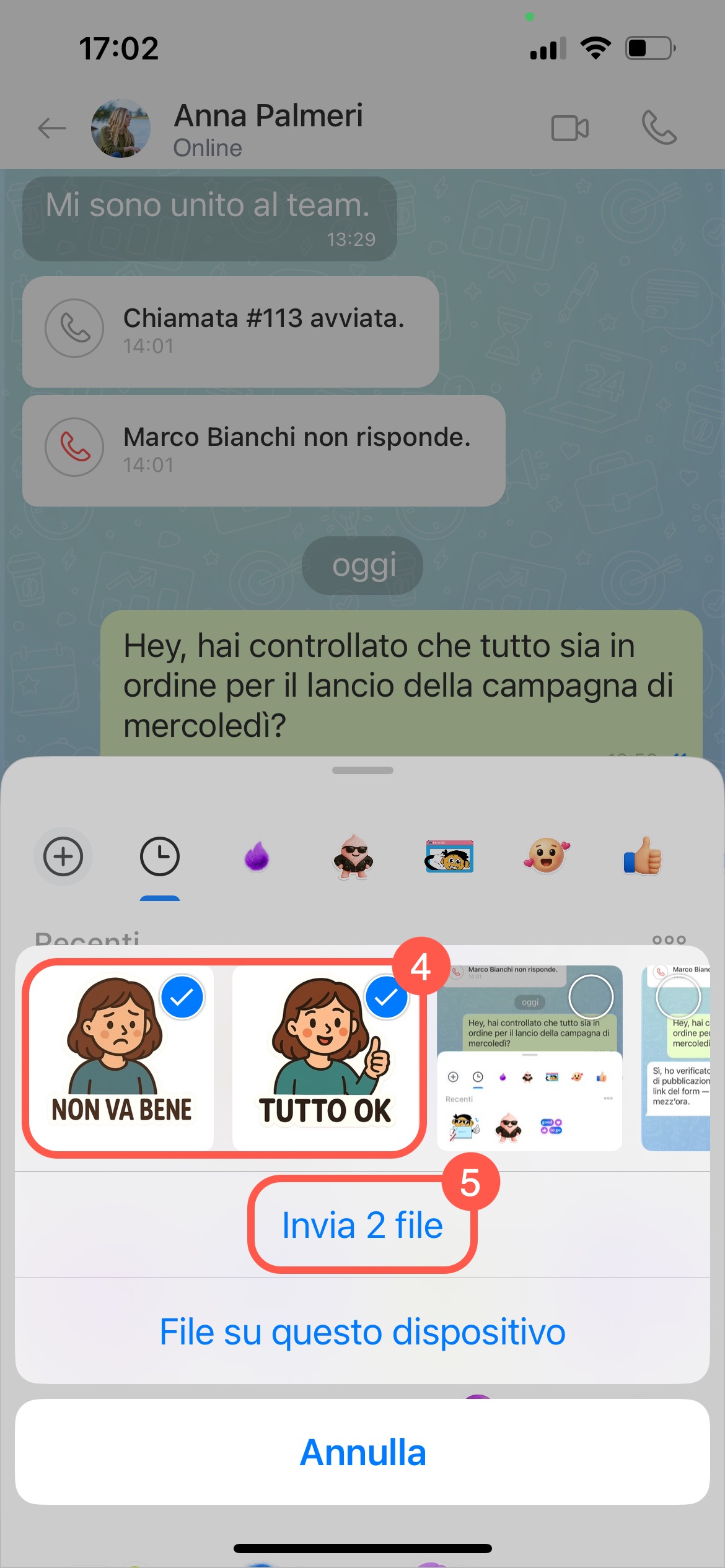 - Toccalo per inviarlo: apparirà subito nella chat.