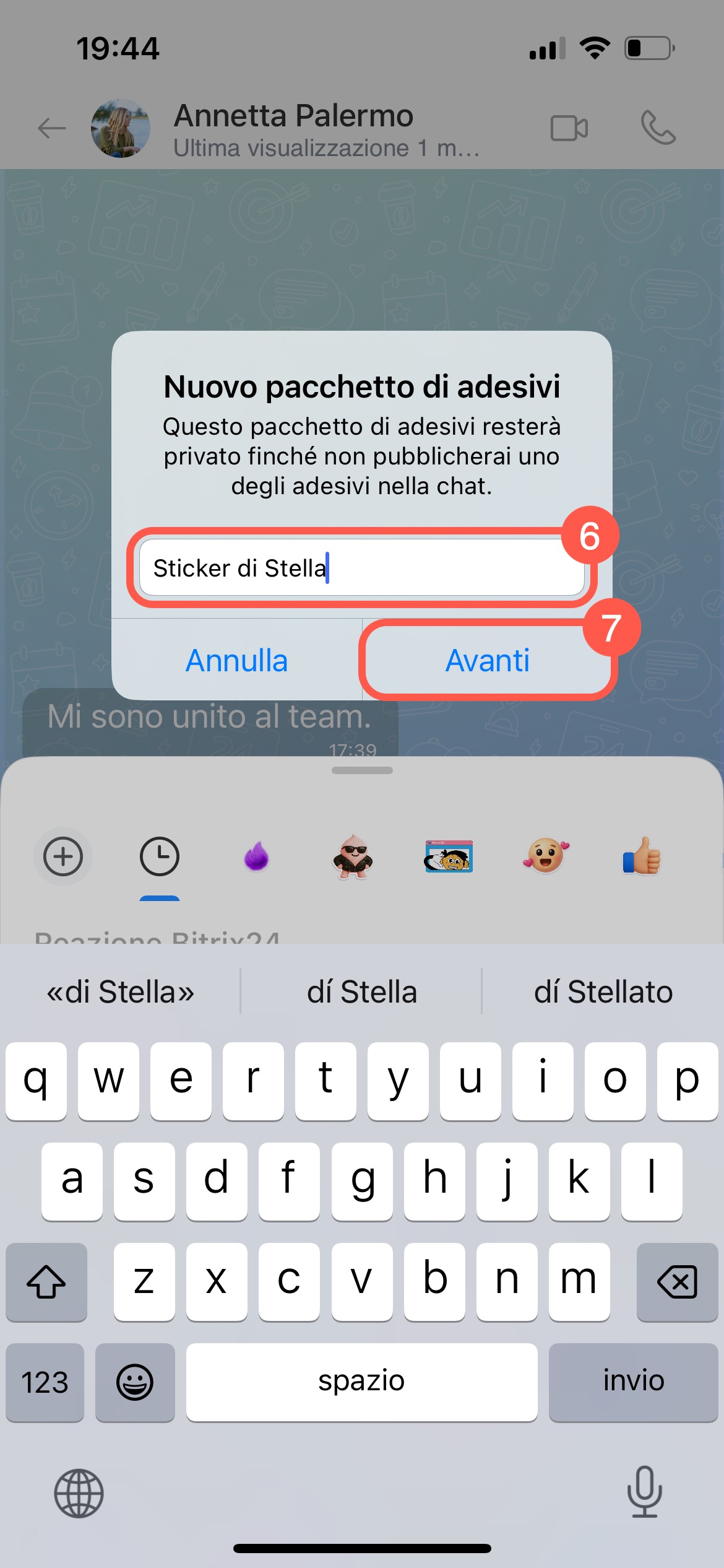 - Il pacchetto di adesivi è pronto e puoi iniziare a usare gli adesivi in chat.