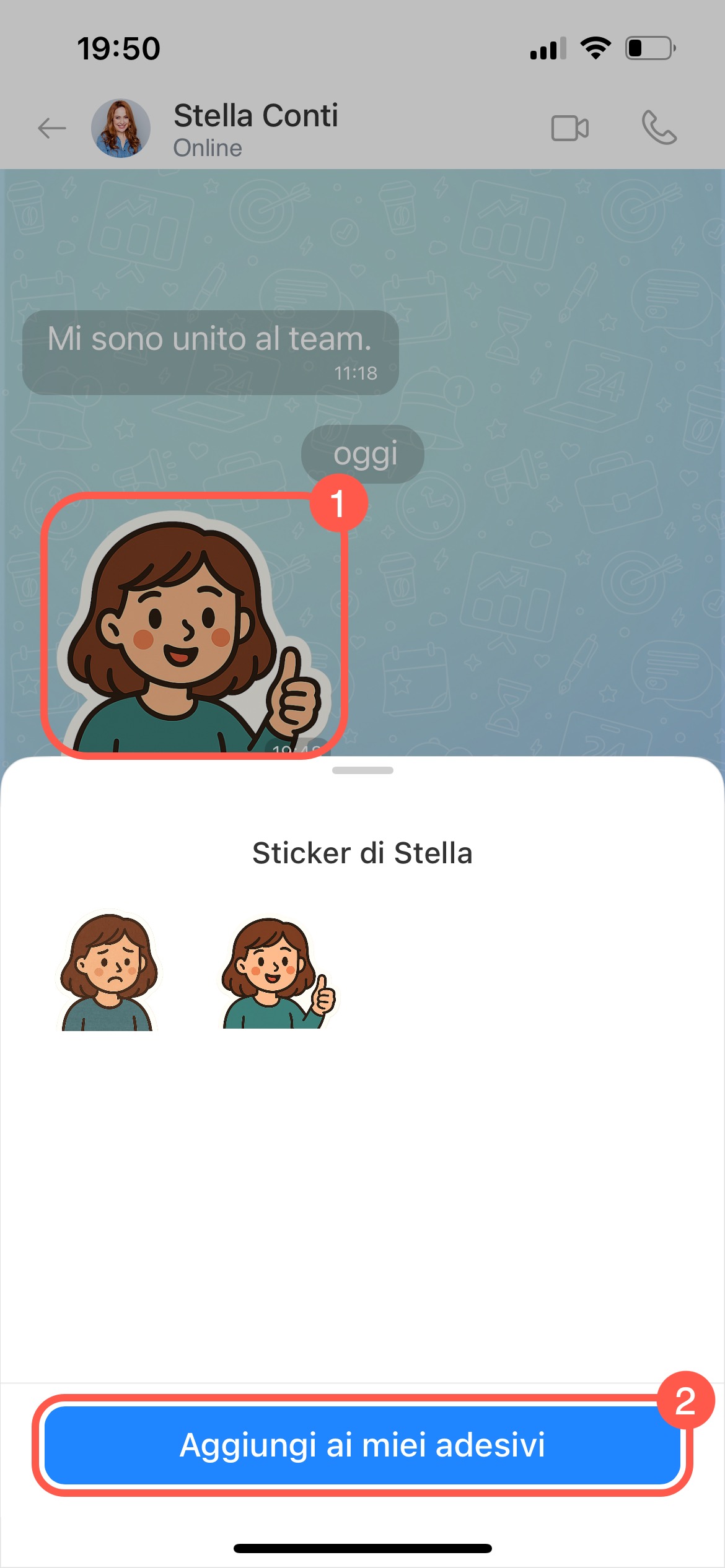 - Fai clic sull'adesivo che preferisci: apparirà subito nella chat.