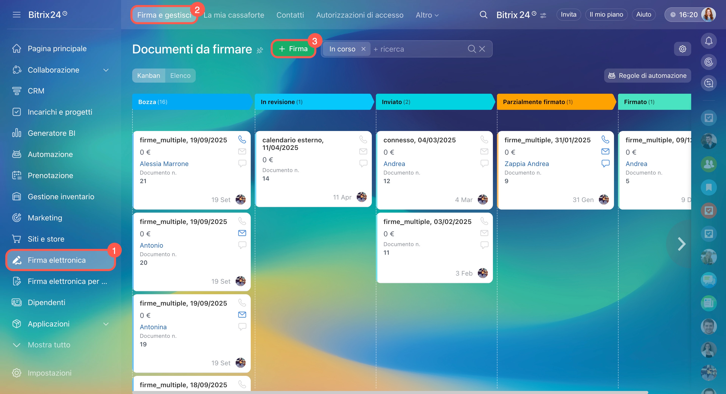 Con la firma elettronica in Bitrix24 puoi firmare contratti e altri documenti con partner commerciali in formato elettronico. È una soluzione pratica e veloce: non serve stampare, scansionare o scambiarsi documenti di persona.