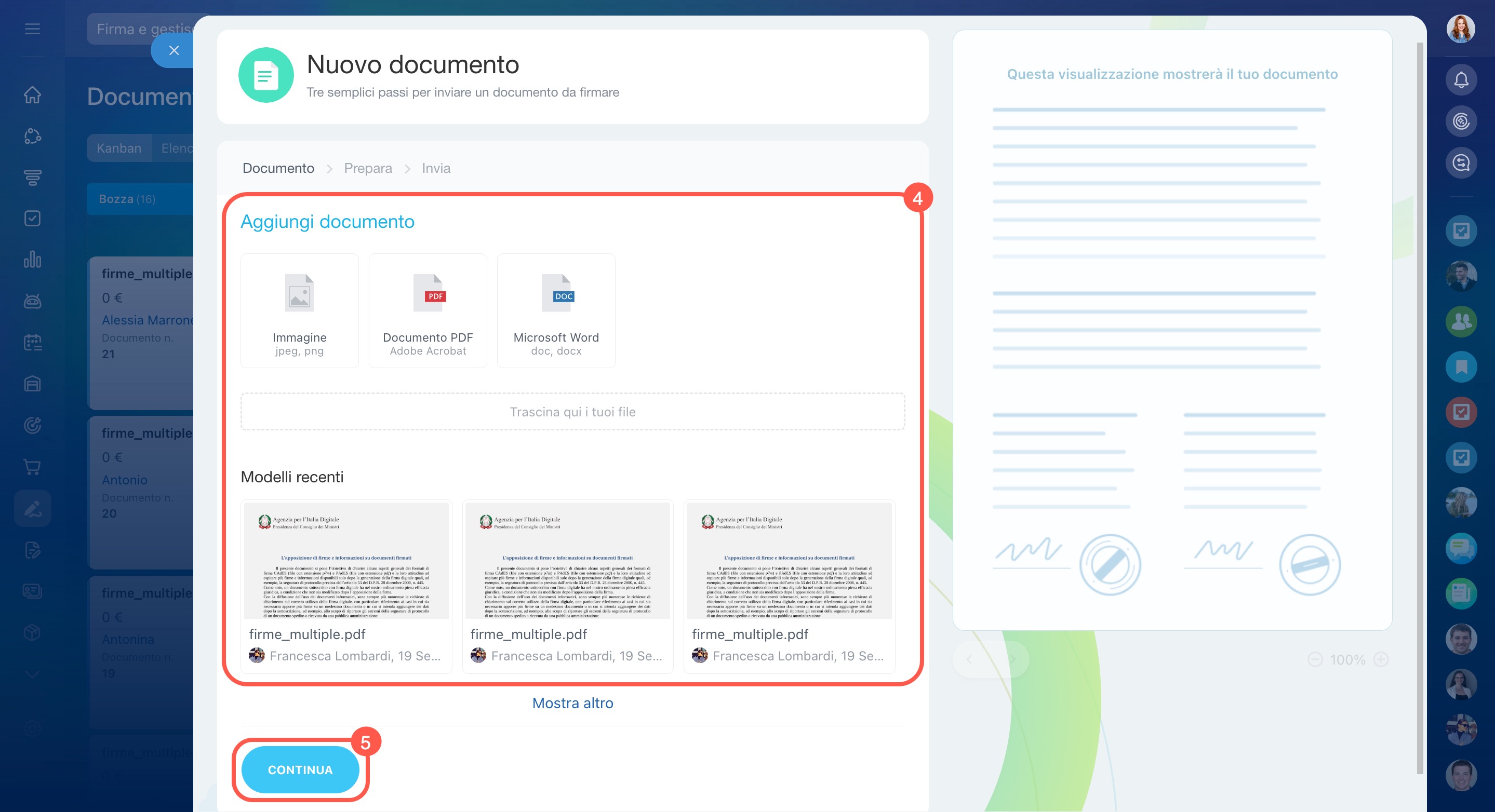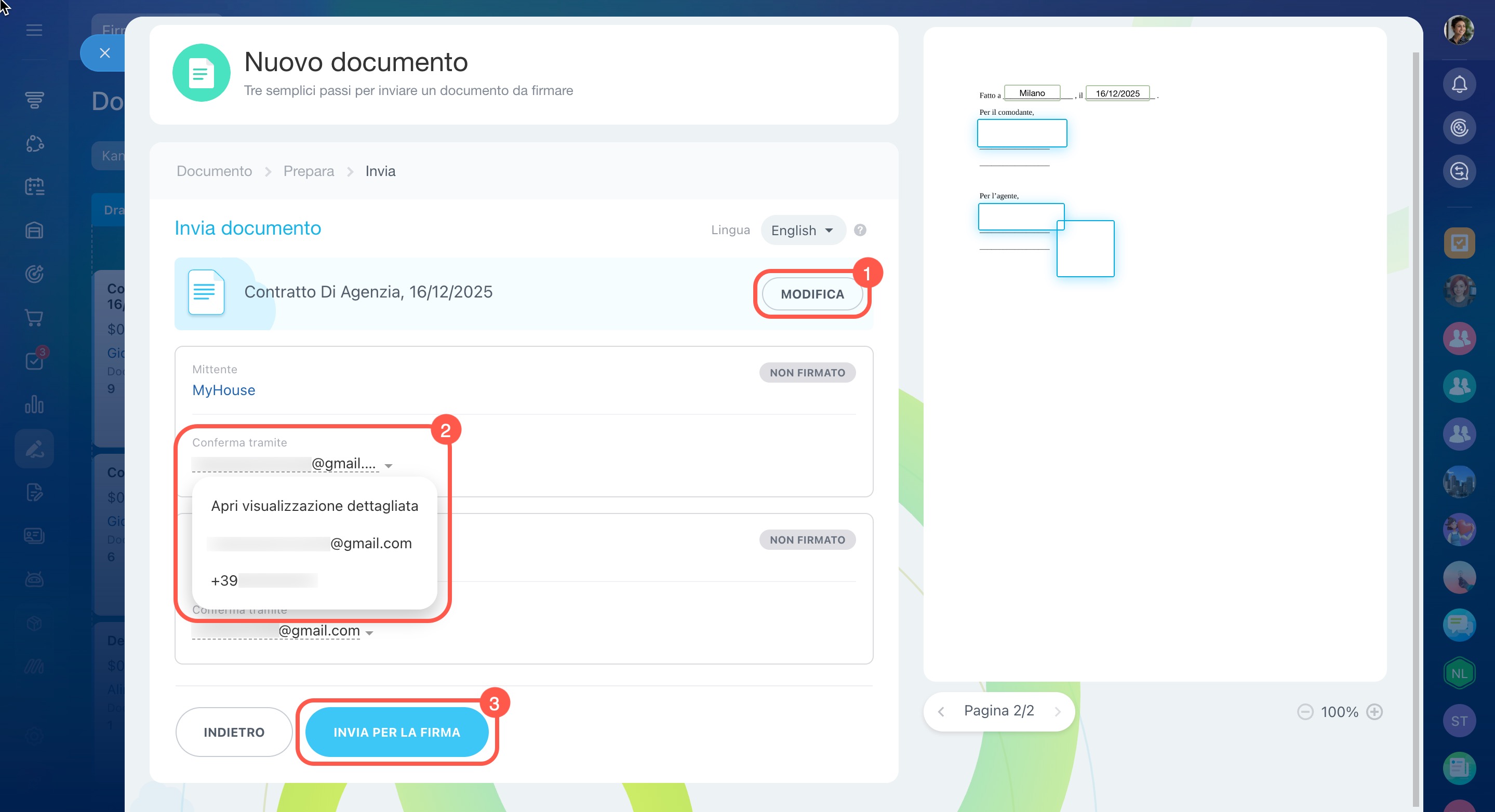 Il documento verrà inviato prima al rappresentante della tua azienda. Dopo la sua firma, il file sarà trasmesso automaticamente al destinatario.