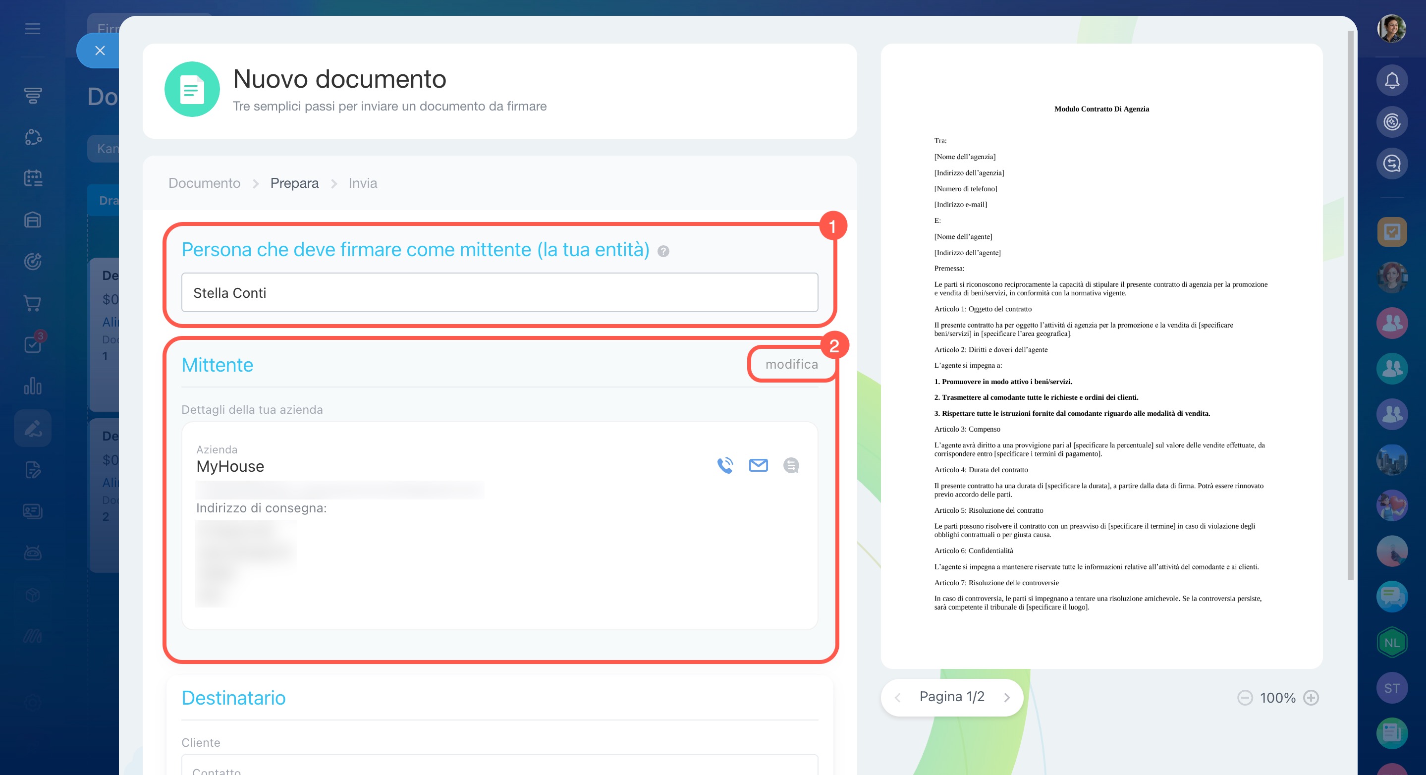 Indica chi firmerà il documento per conto della tua azienda e del destinatario. Può essere il direttore oppure un altro dipendente autorizzato.