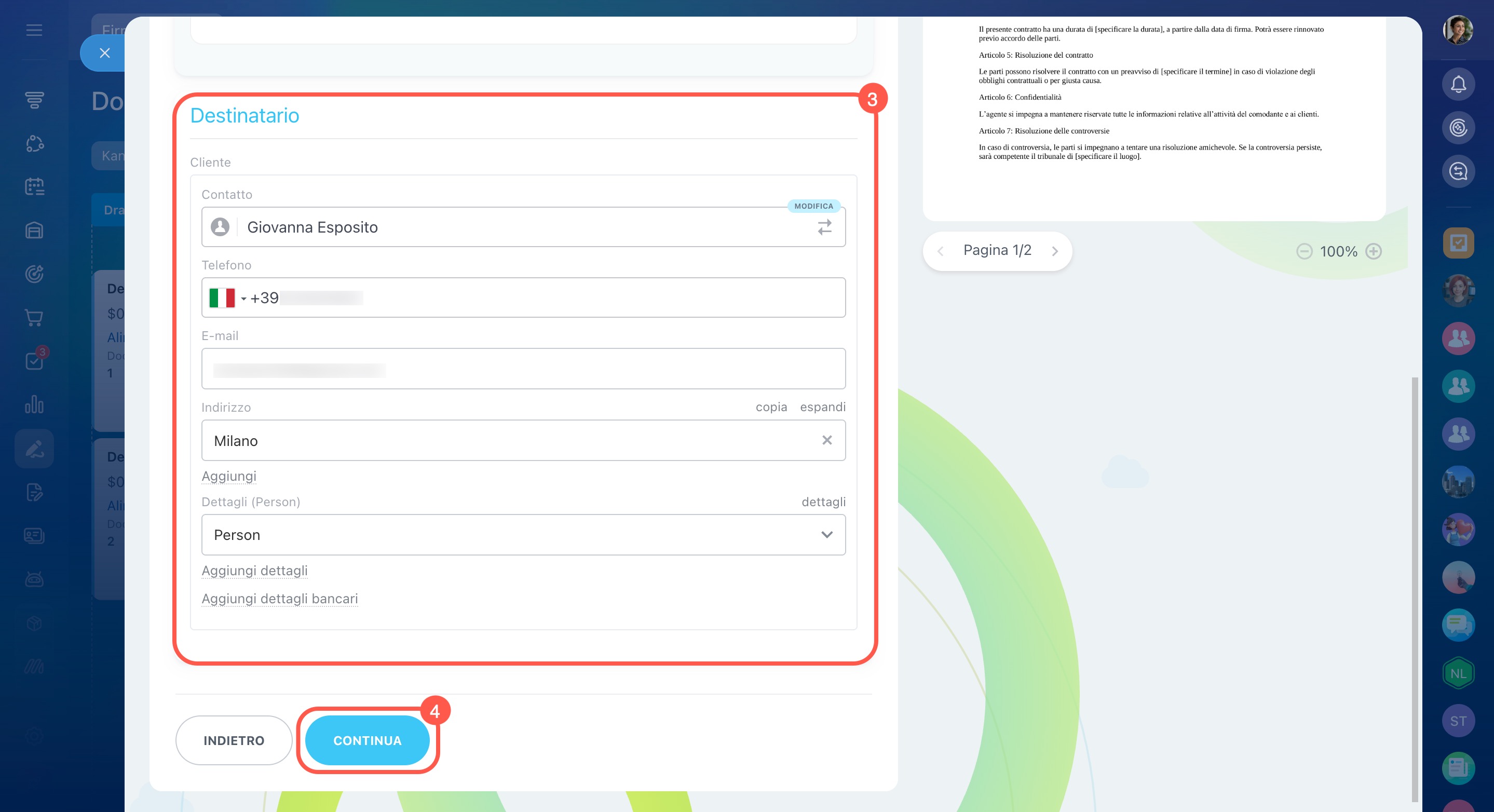 - Dettagli aziendali, firma e timbro — verranno richiesti al destinatario al momento della firma del documento.
