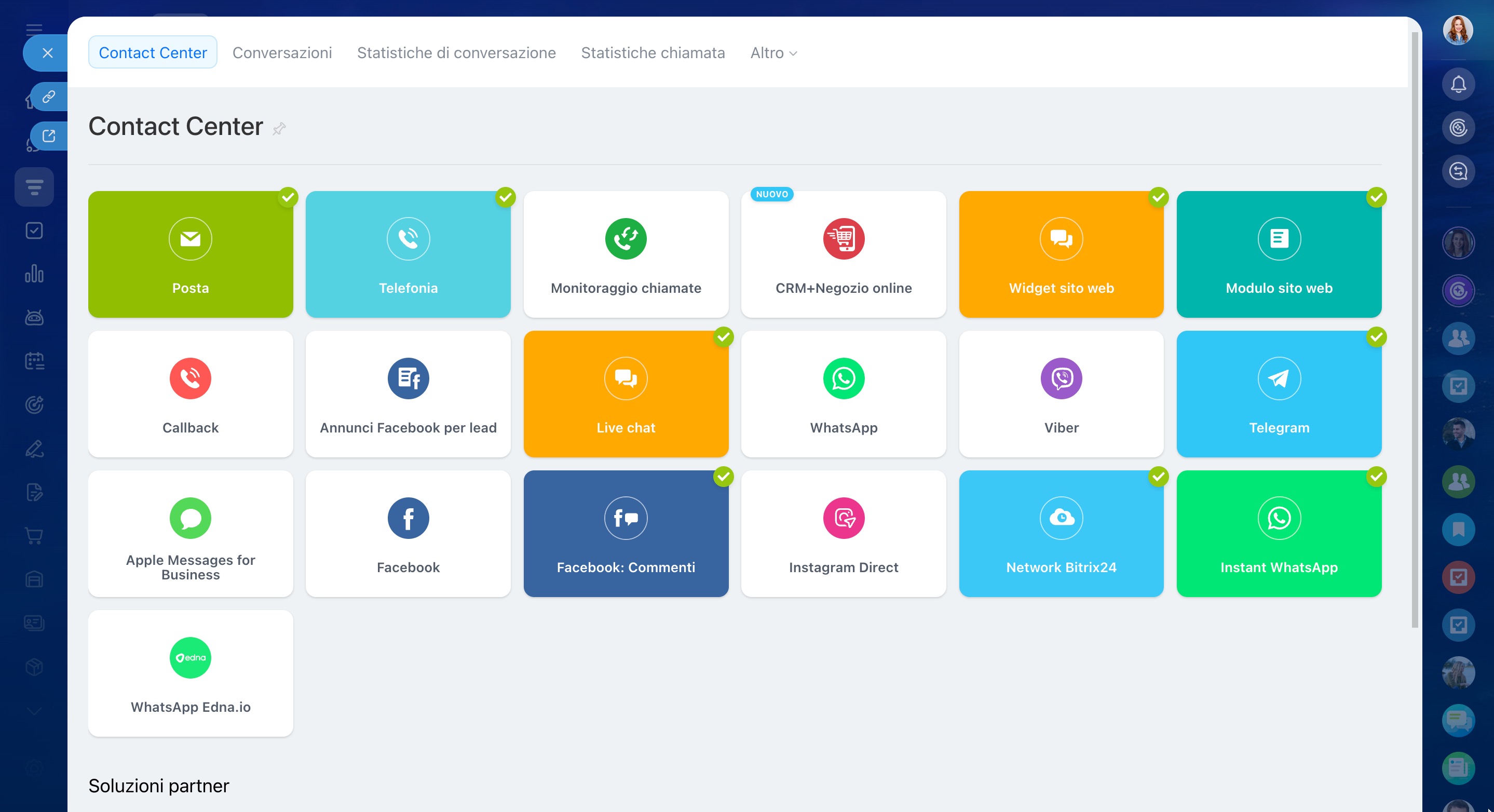 Qui trovi le risposte alle domande sul collegamento di messaggistica, social network e telefonia a Bitrix24. Gli articoli spiegano come risolvere i problemi più comuni, ad esempio con i canali aperti o le chiamate in uscita.