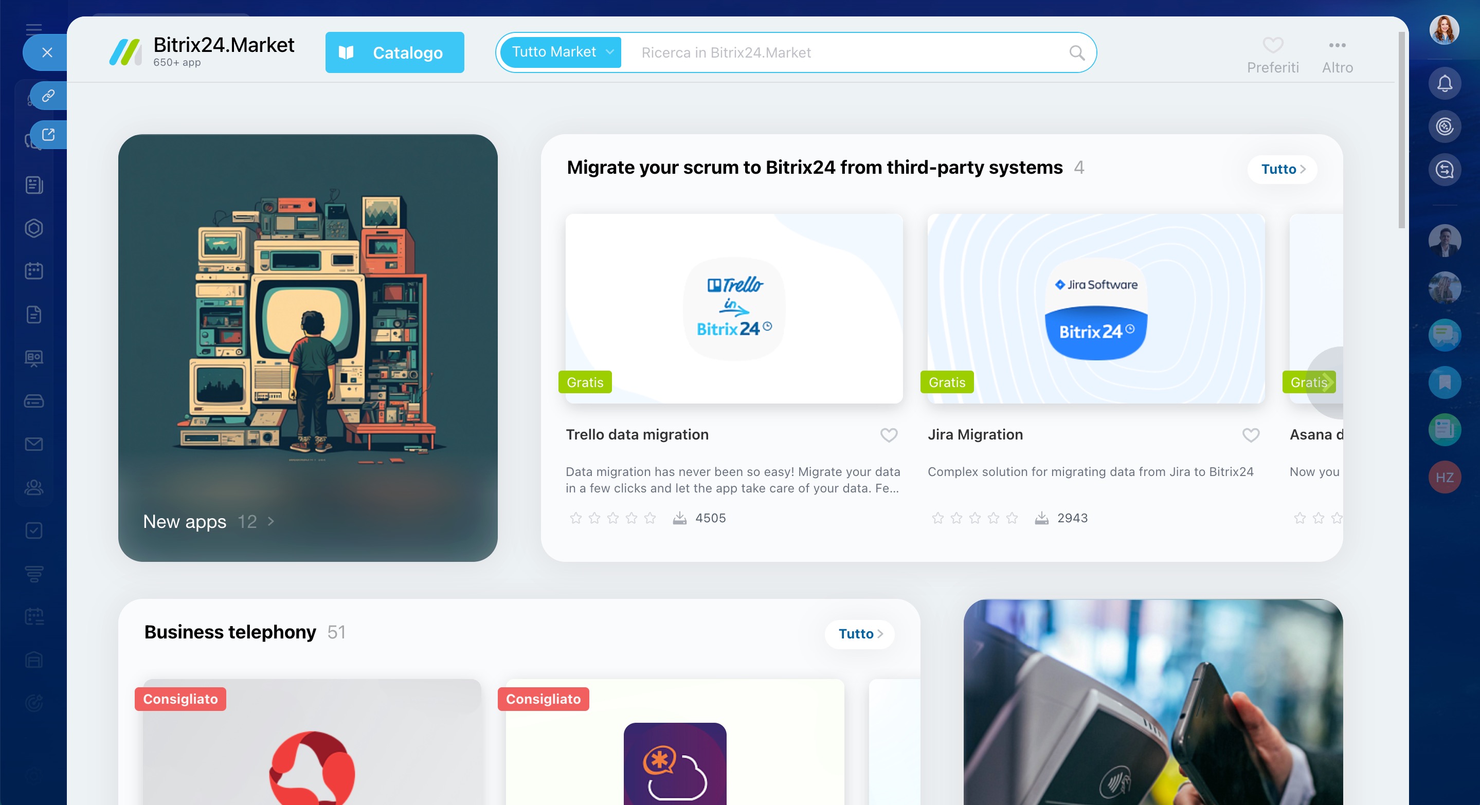 Spieghiamo come collegare Bitrix24 ad altri servizi e come utilizzare le applicazioni del Market per ampliare le funzionalità del tuo account.