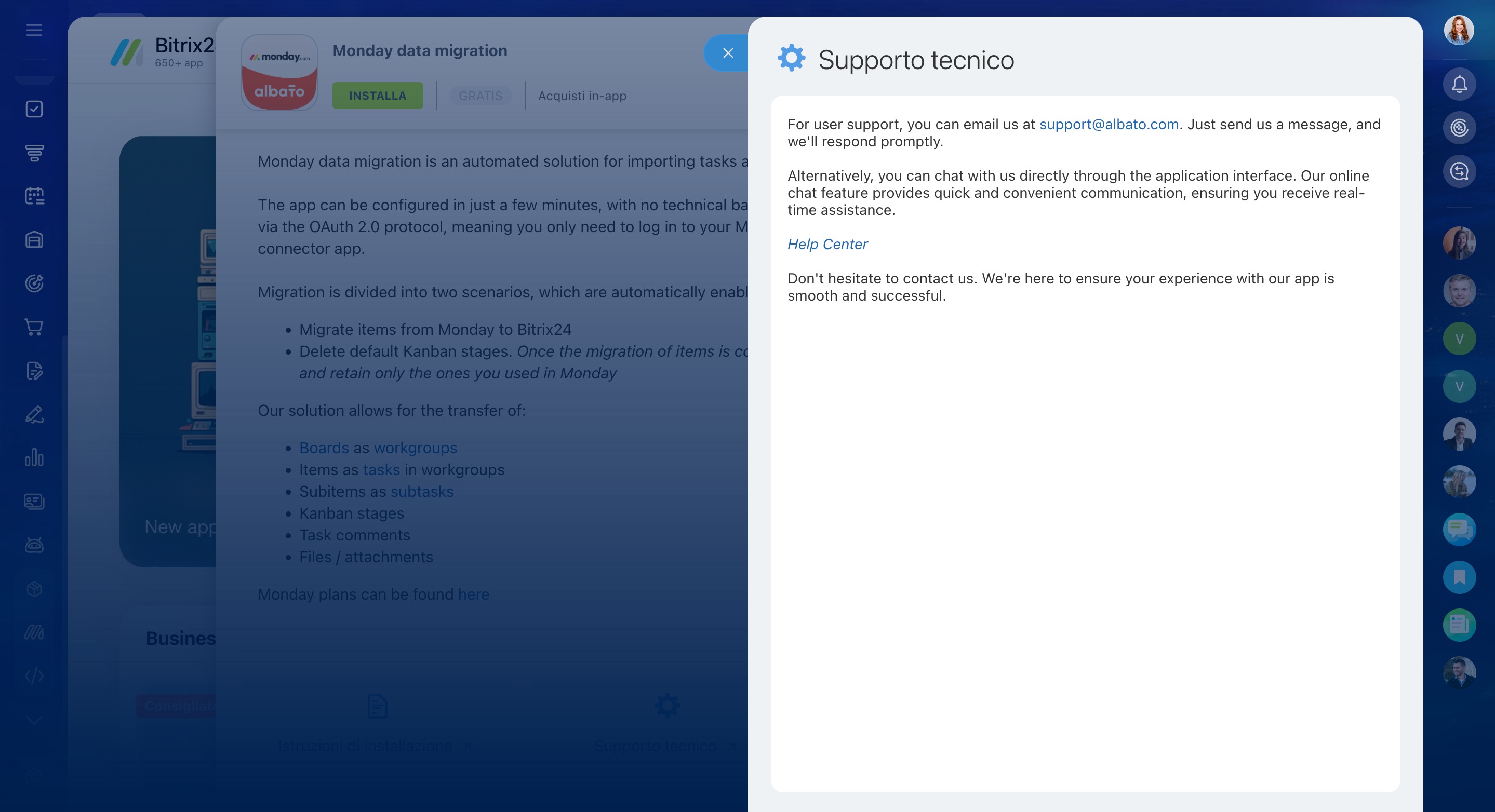 - come contattare il supporto Bitrix24,