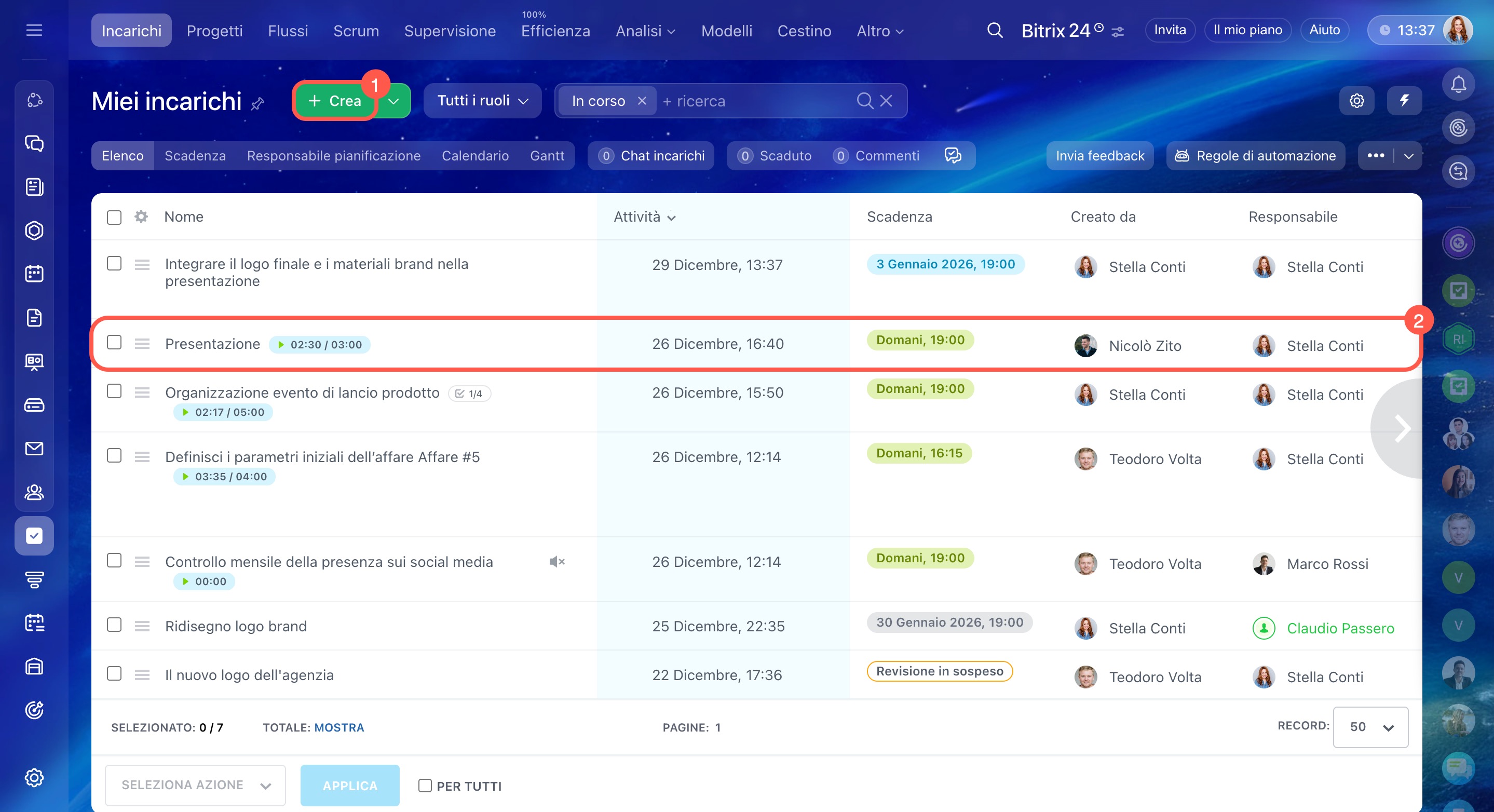 In Bitrix24 puoi creare un incarico secondario sia dalla versione web che dall’app mobile.
