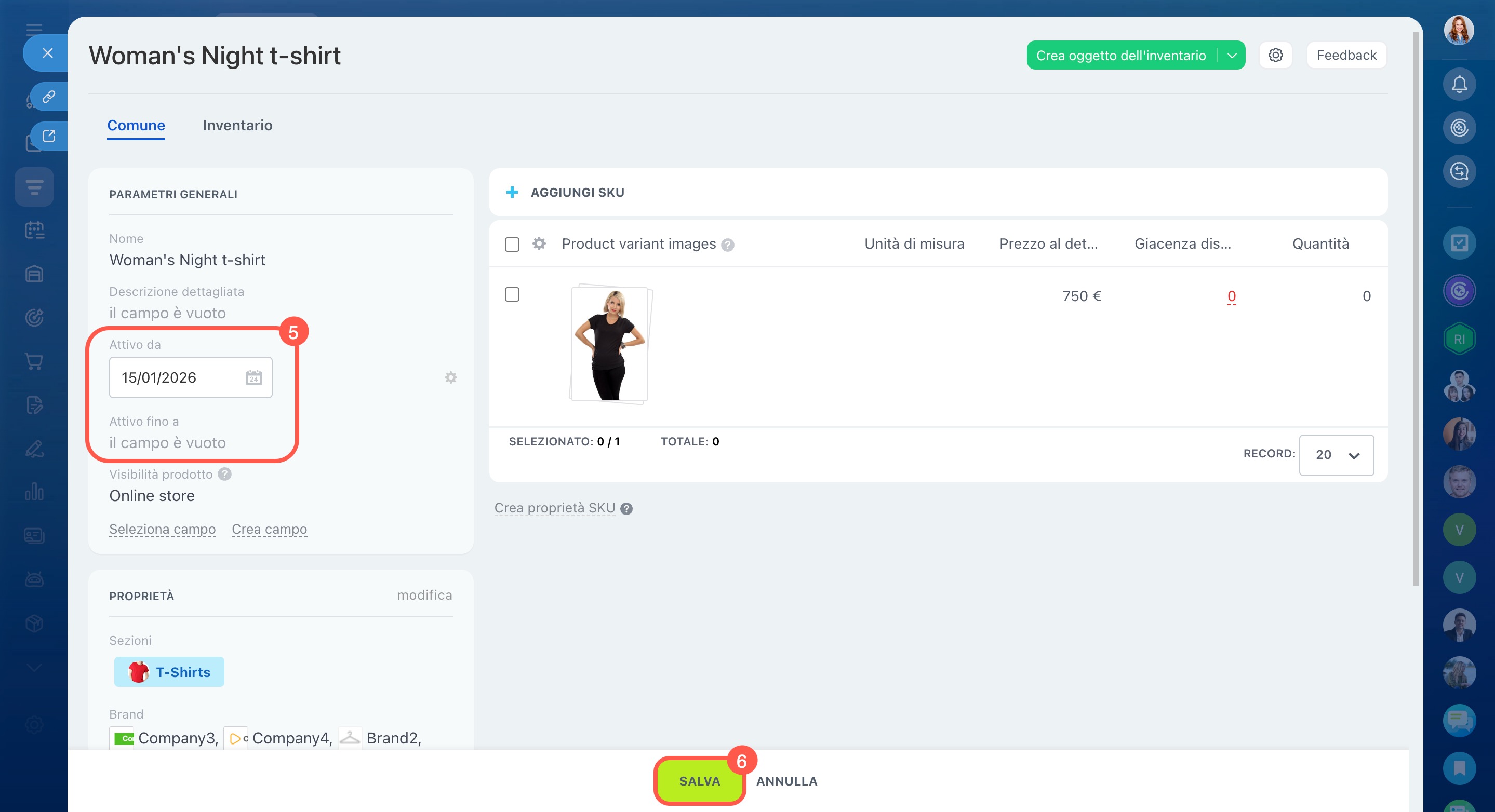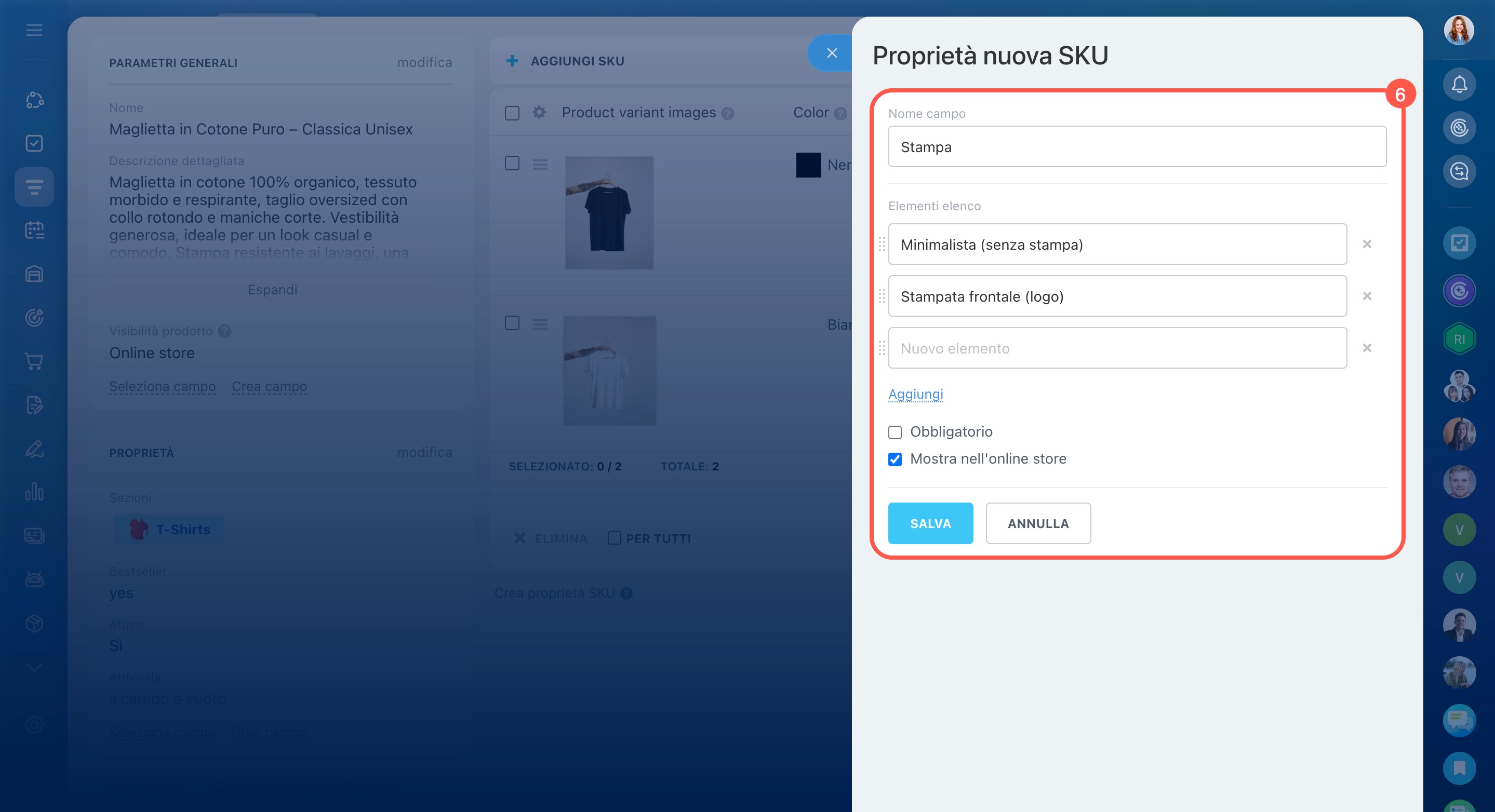 Crea prodotti nel catalogo