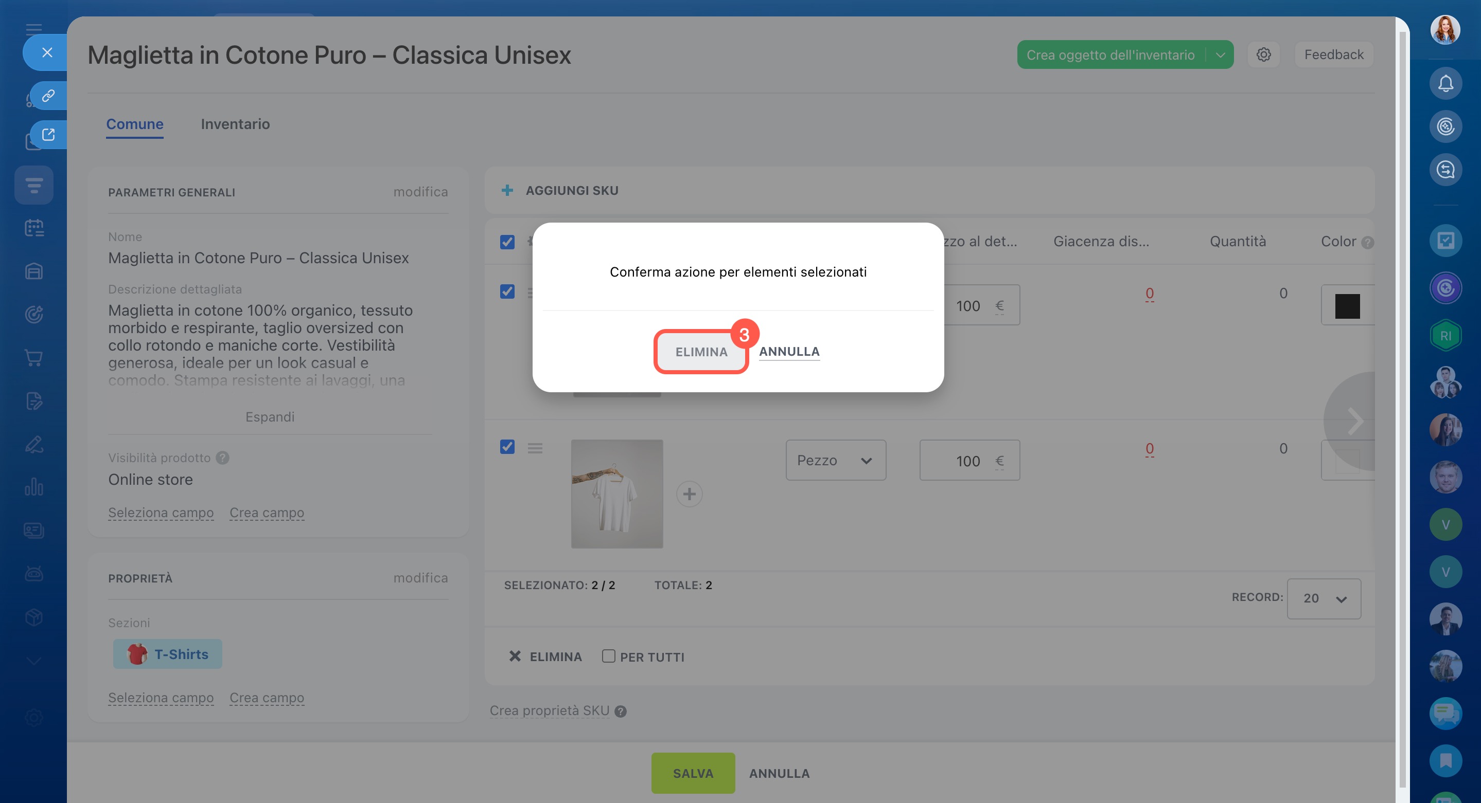 1. Apri la scheda del prodotto con varianti e fai clic su Elimina accanto a ciascuna variante, senza salvare le modifiche.