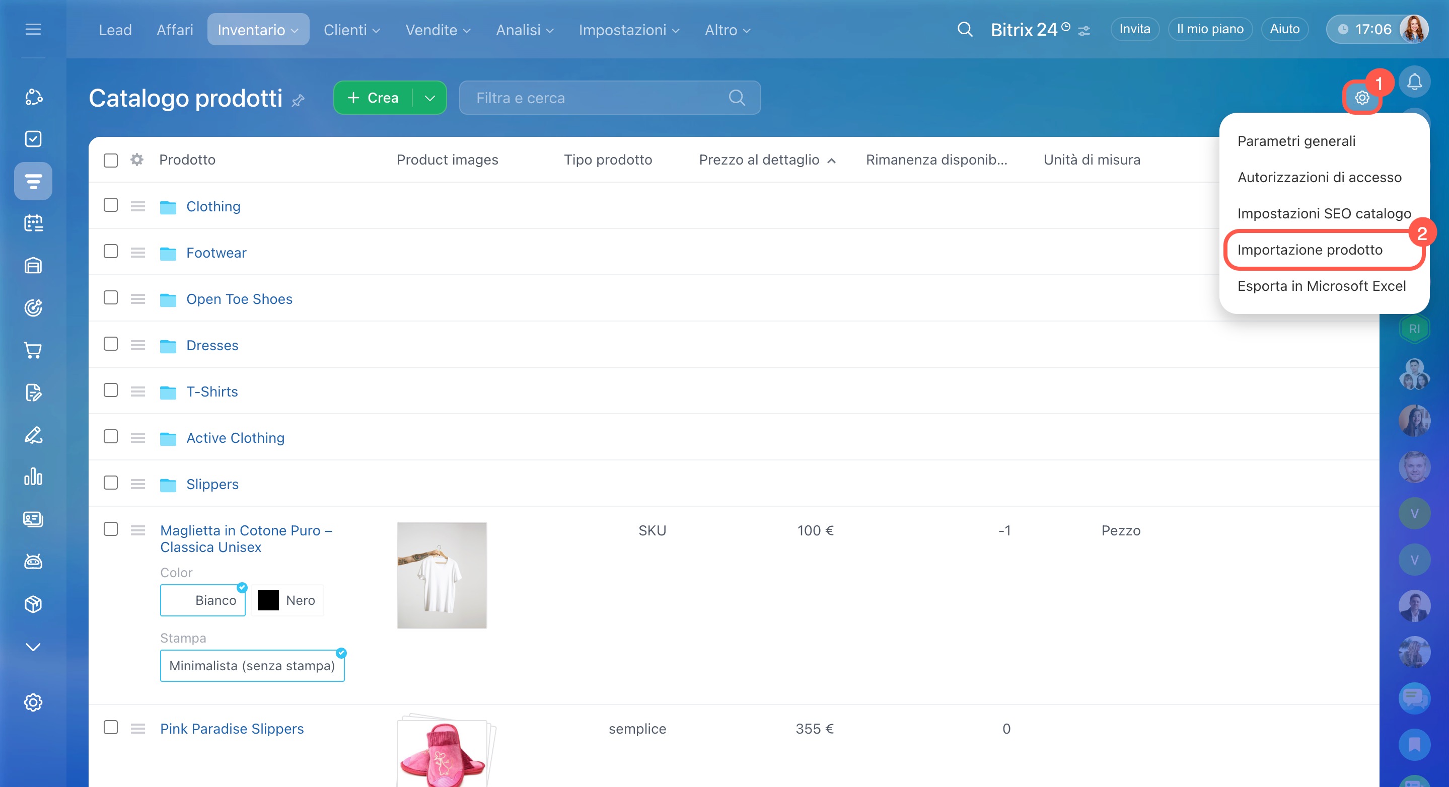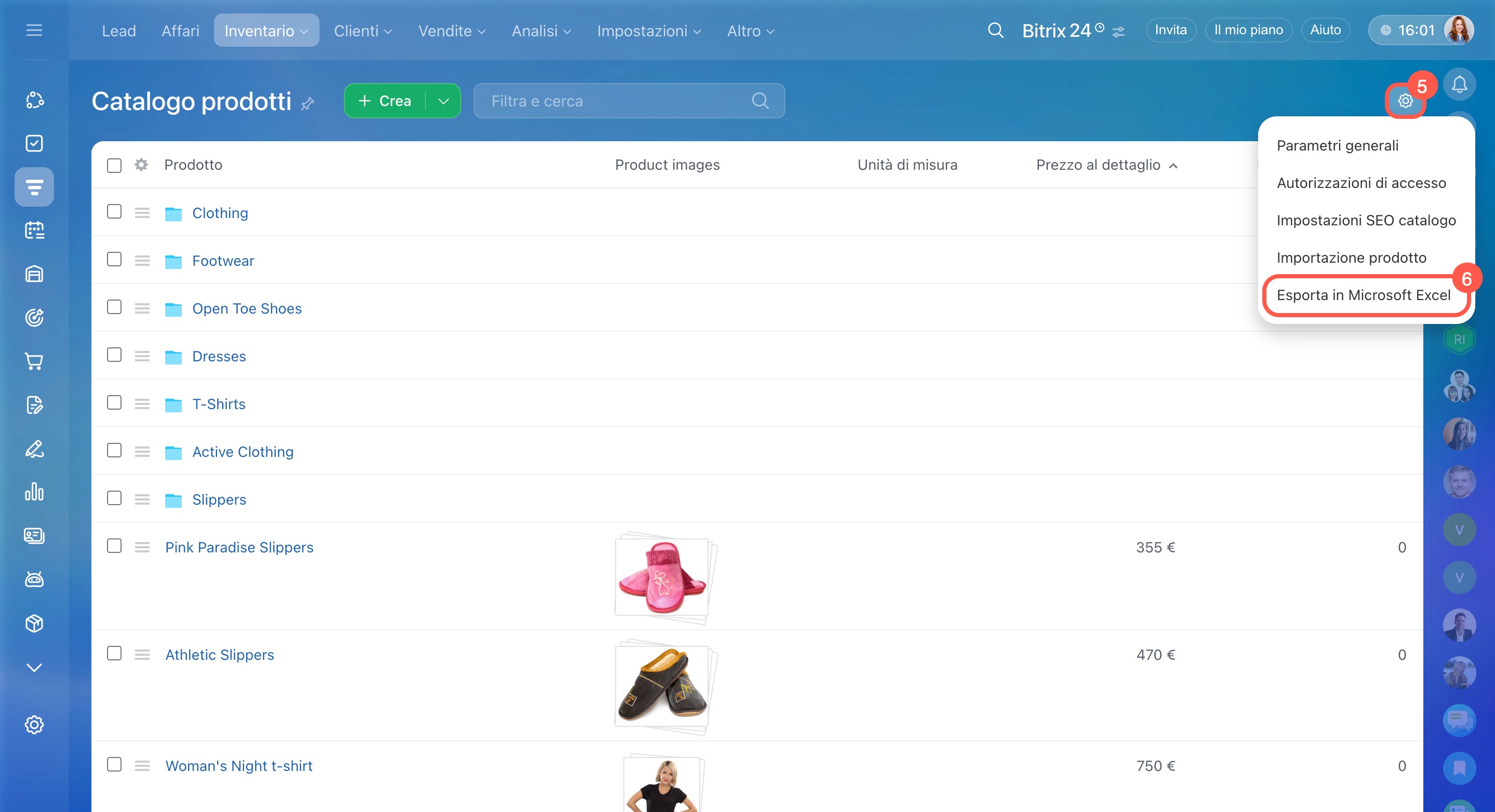 - caricare in Bitrix24 un elenco di prodotti e servizi già pronto;