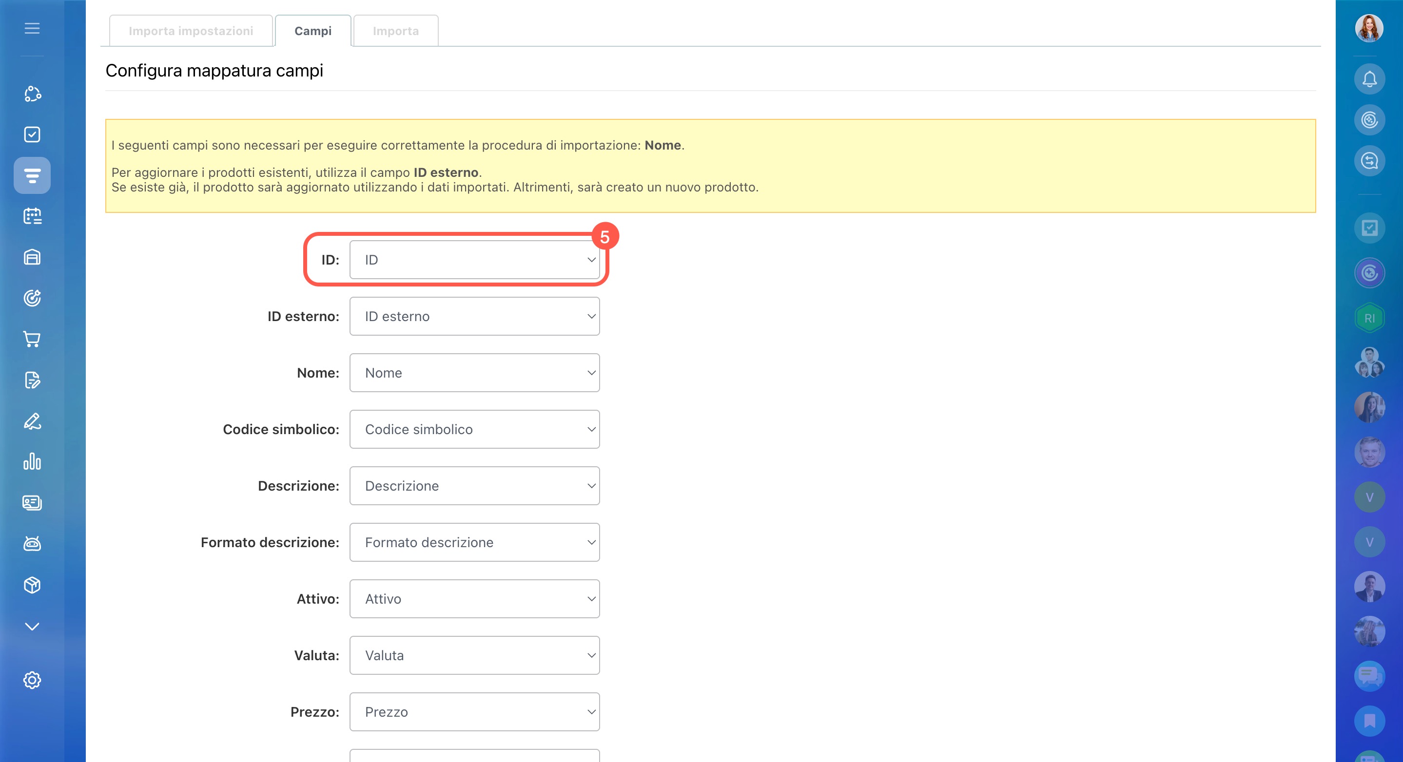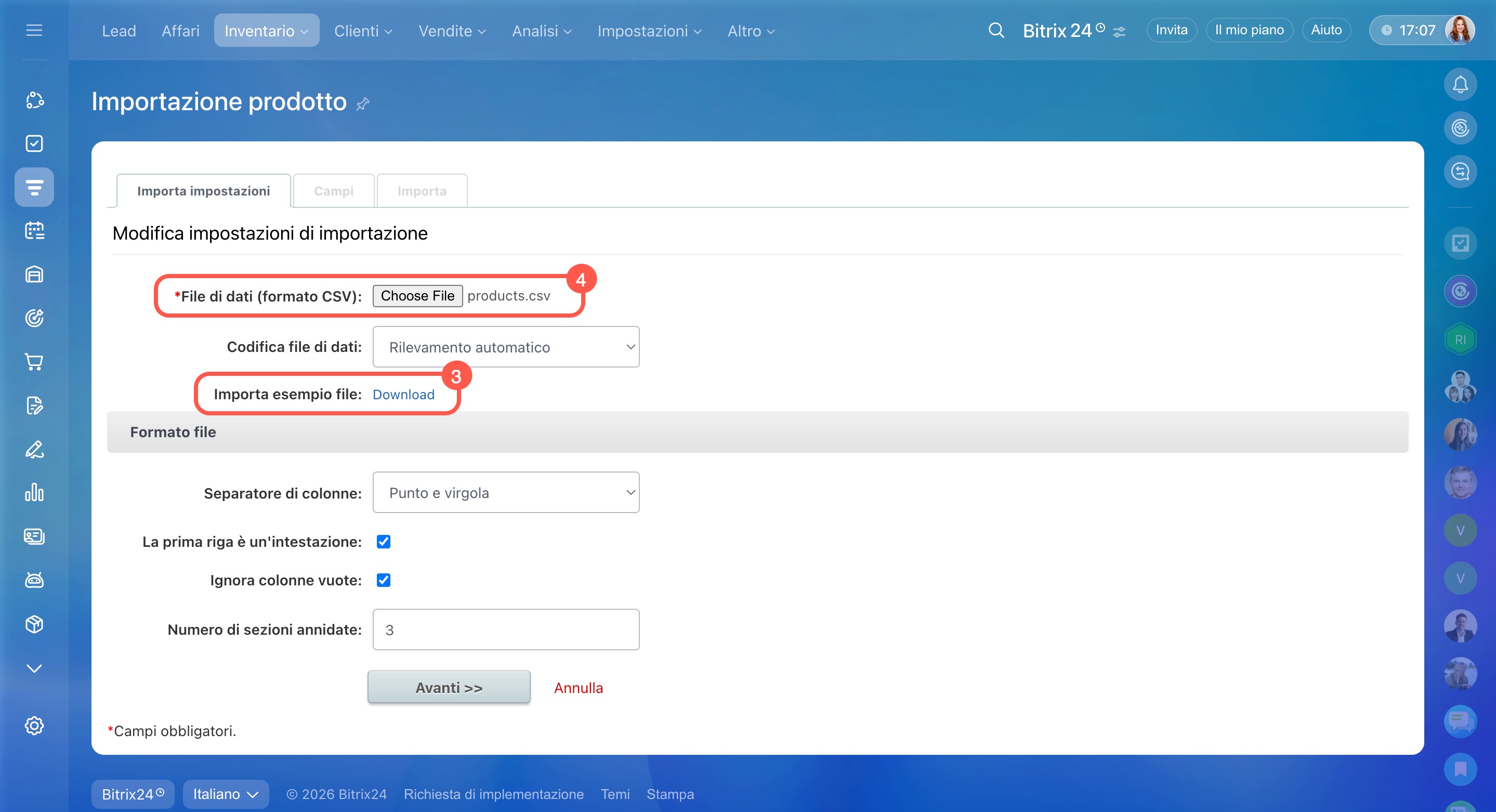 - Carica il file di importazione in Bitrix24 e verifica la corrispondenza dei campi.