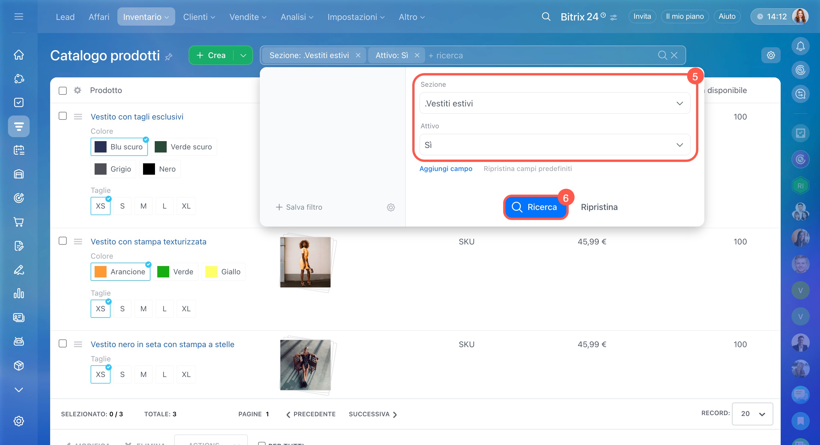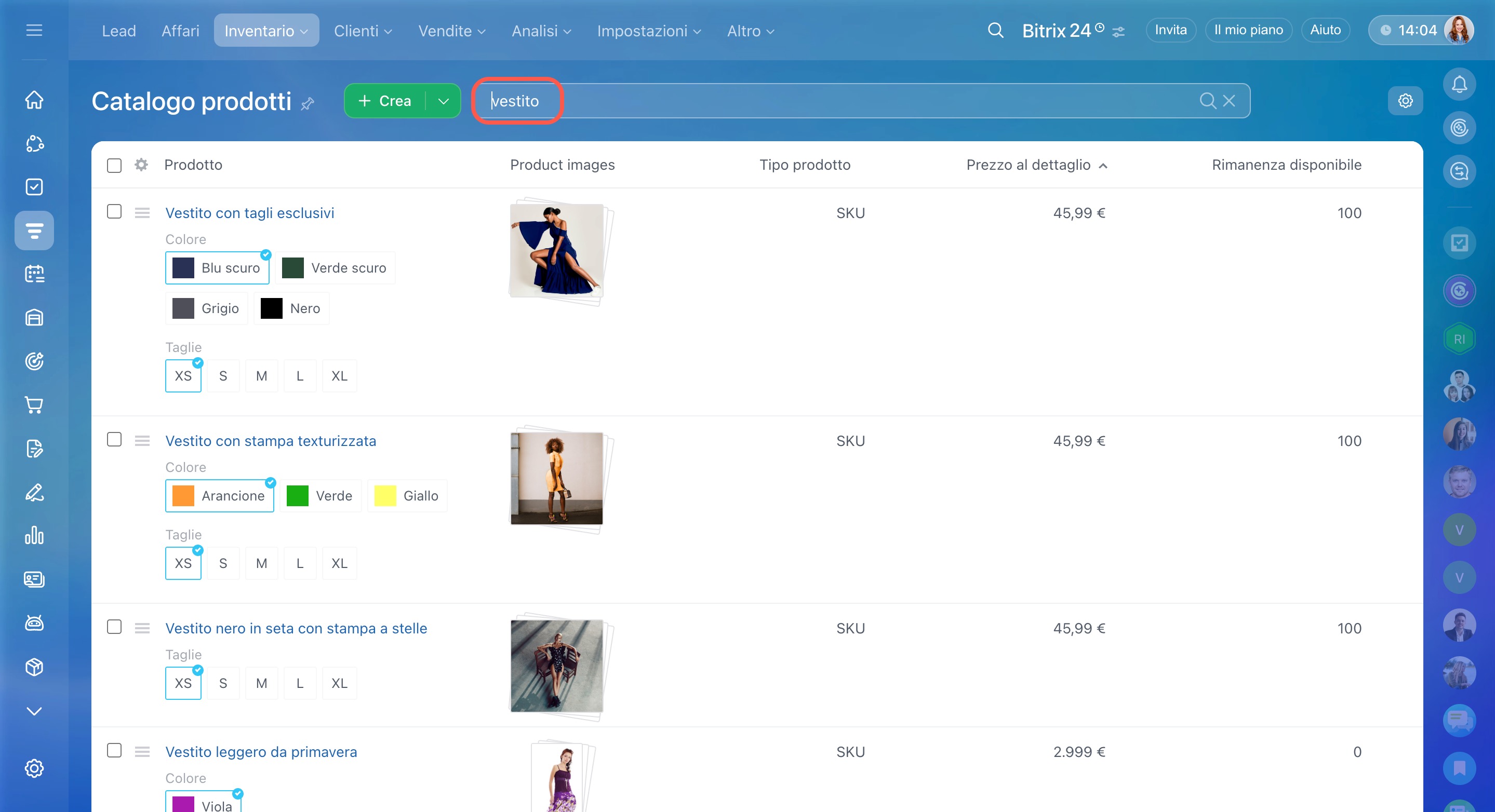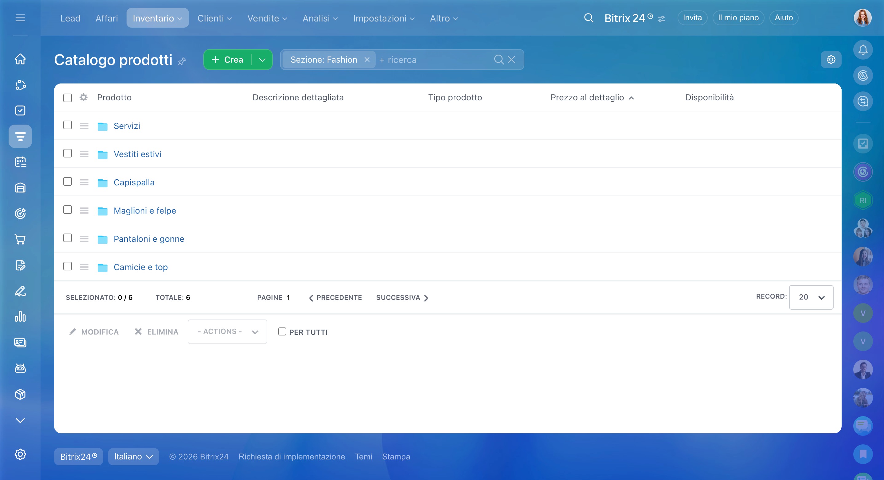 Per aprire il catalogo, vai su CRM > Inventario > Catalogo prodotti.