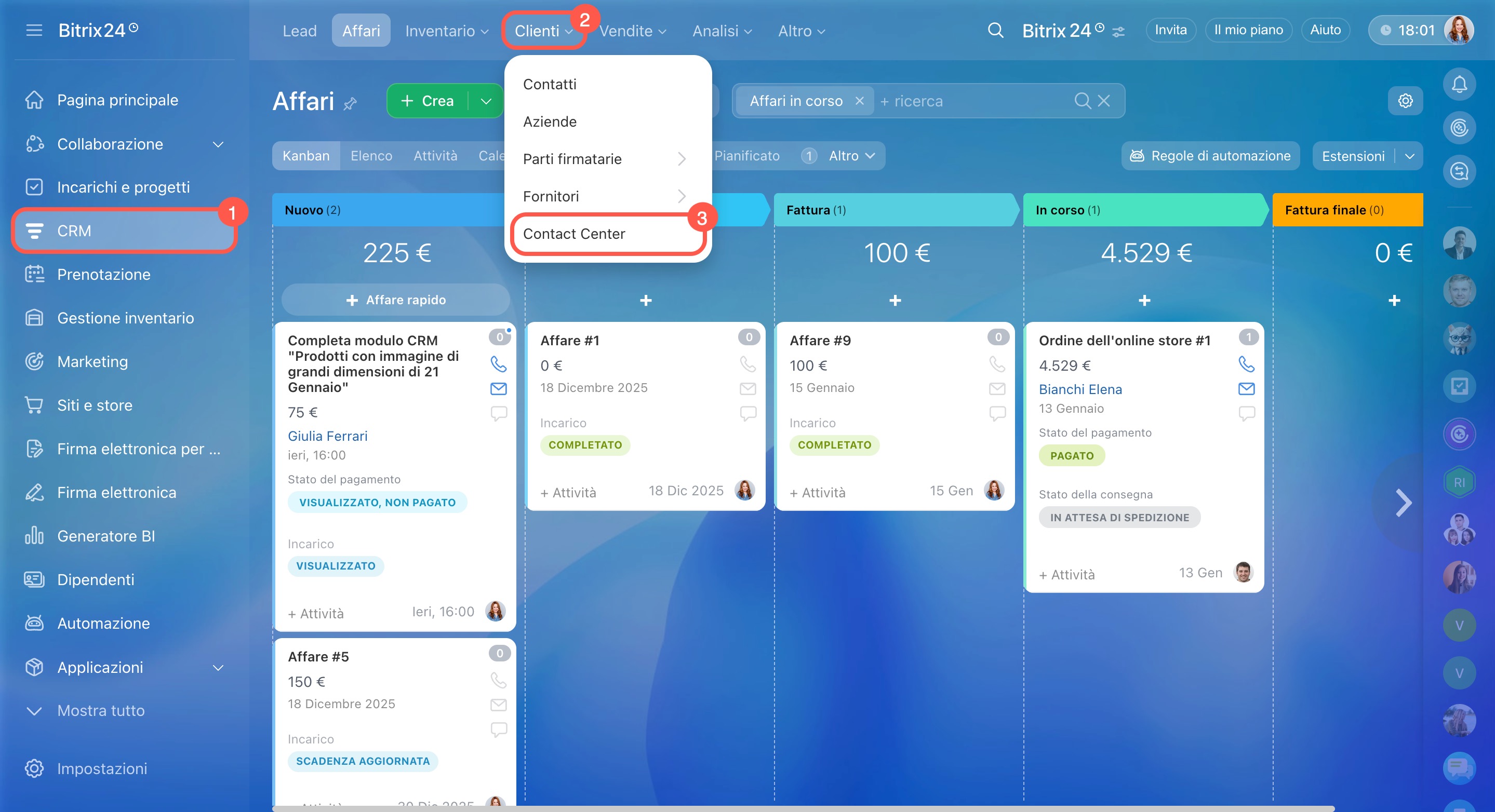 La telefonia in Bitrix24 ti permette di chiamare i clienti direttamente dal CRM, registrare le conversazioni, e tenere tutta la cronologia delle comunicazioni in un unico spazio.
