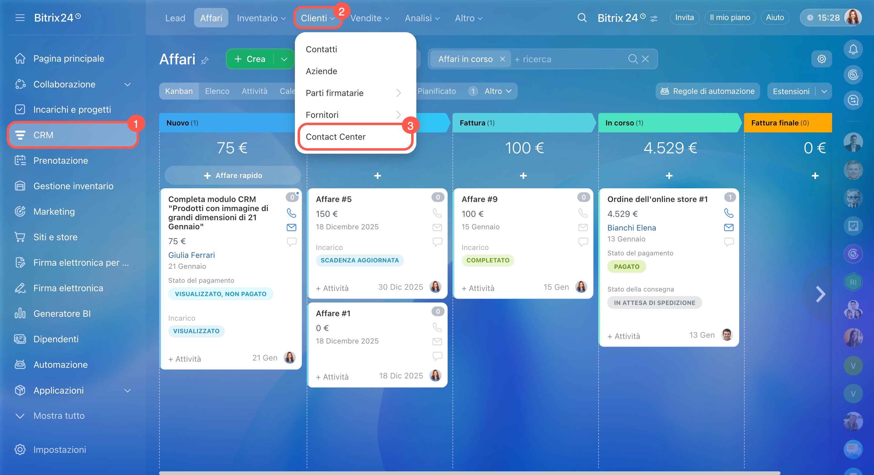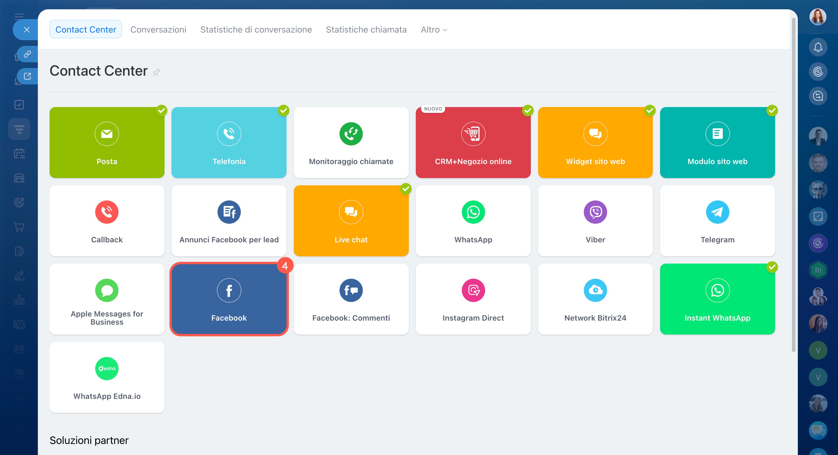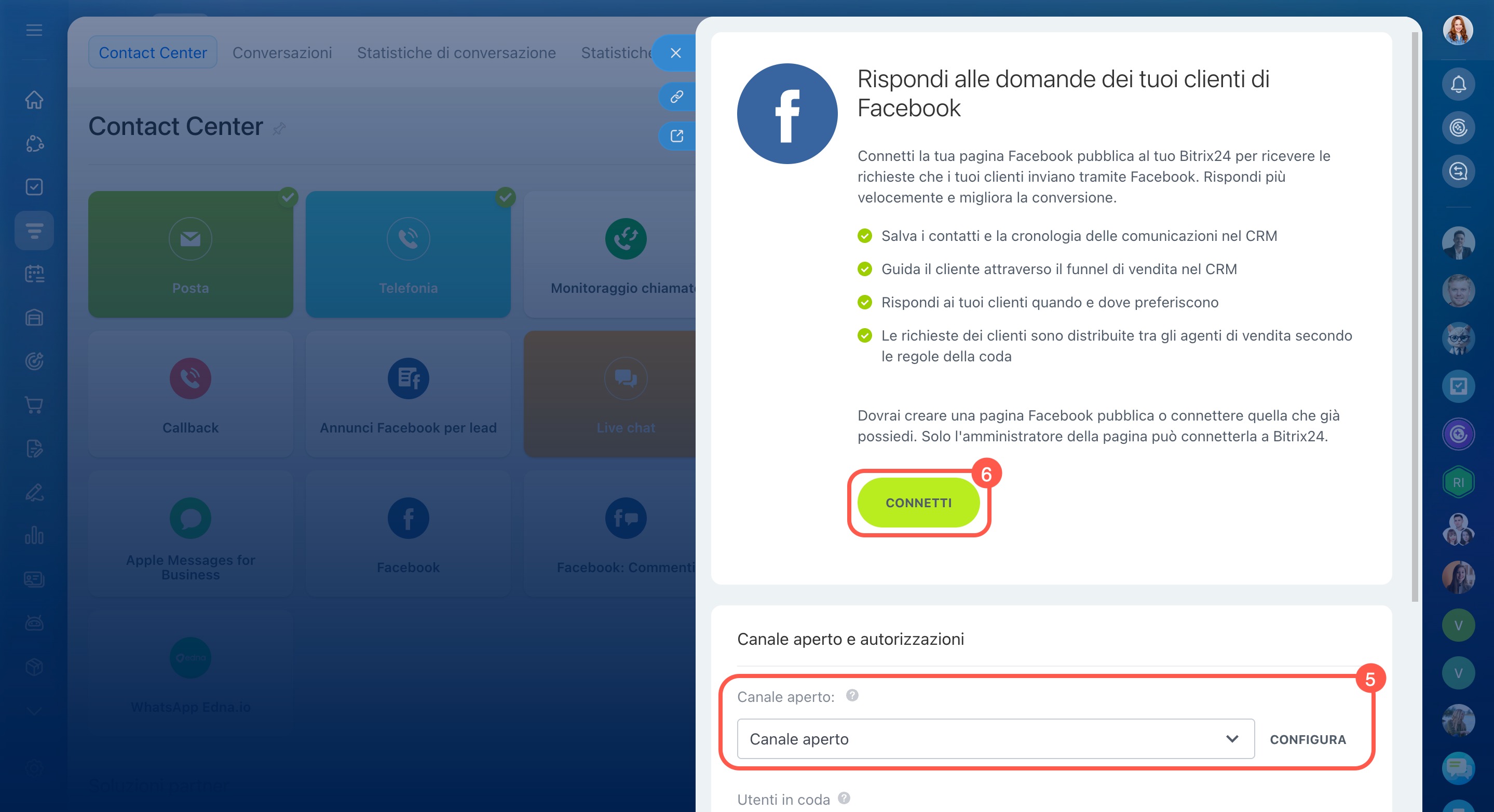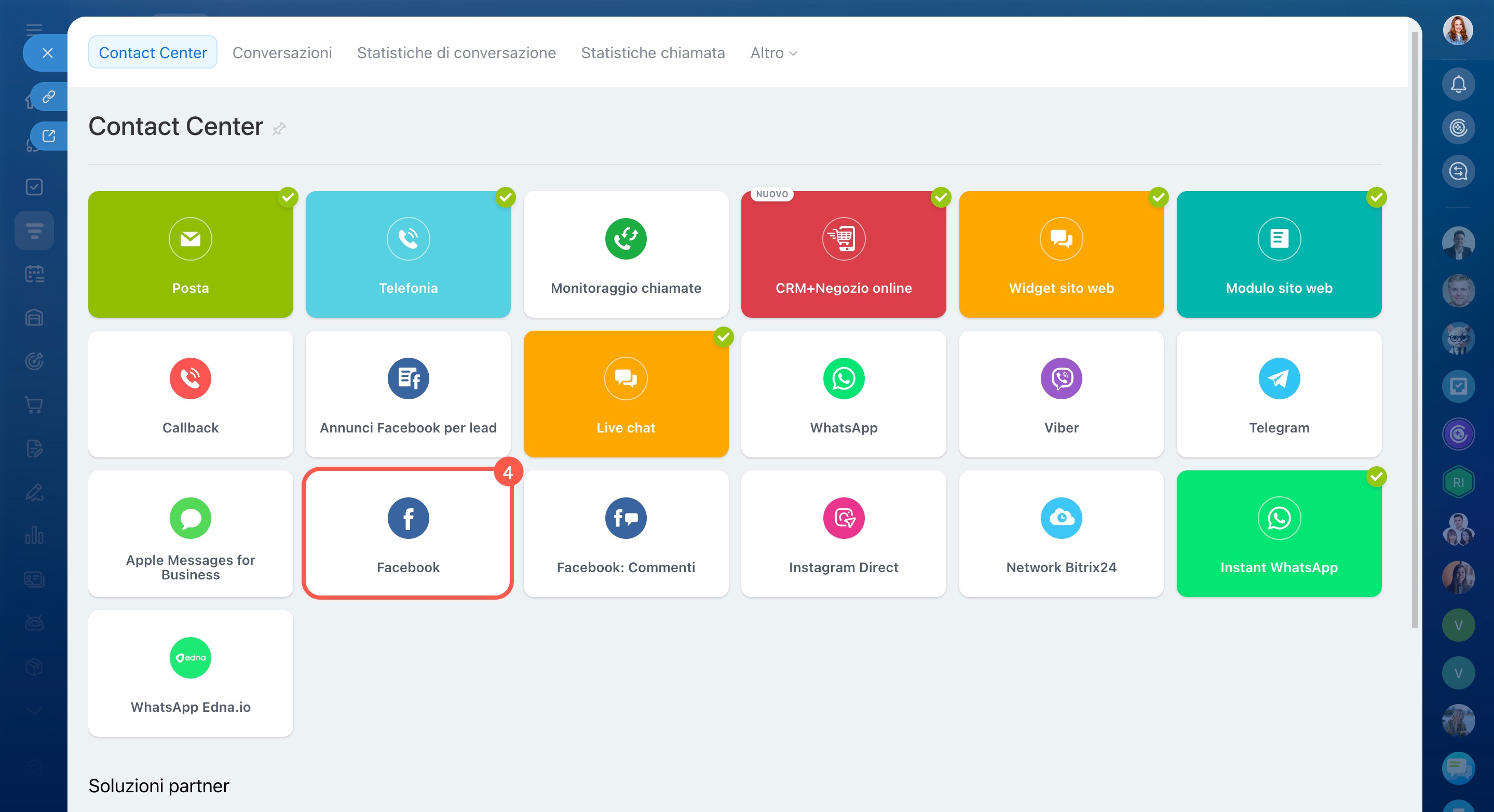 - Vai su CRM > Clienti > Contact Center > Facebook o Instagram Direct.