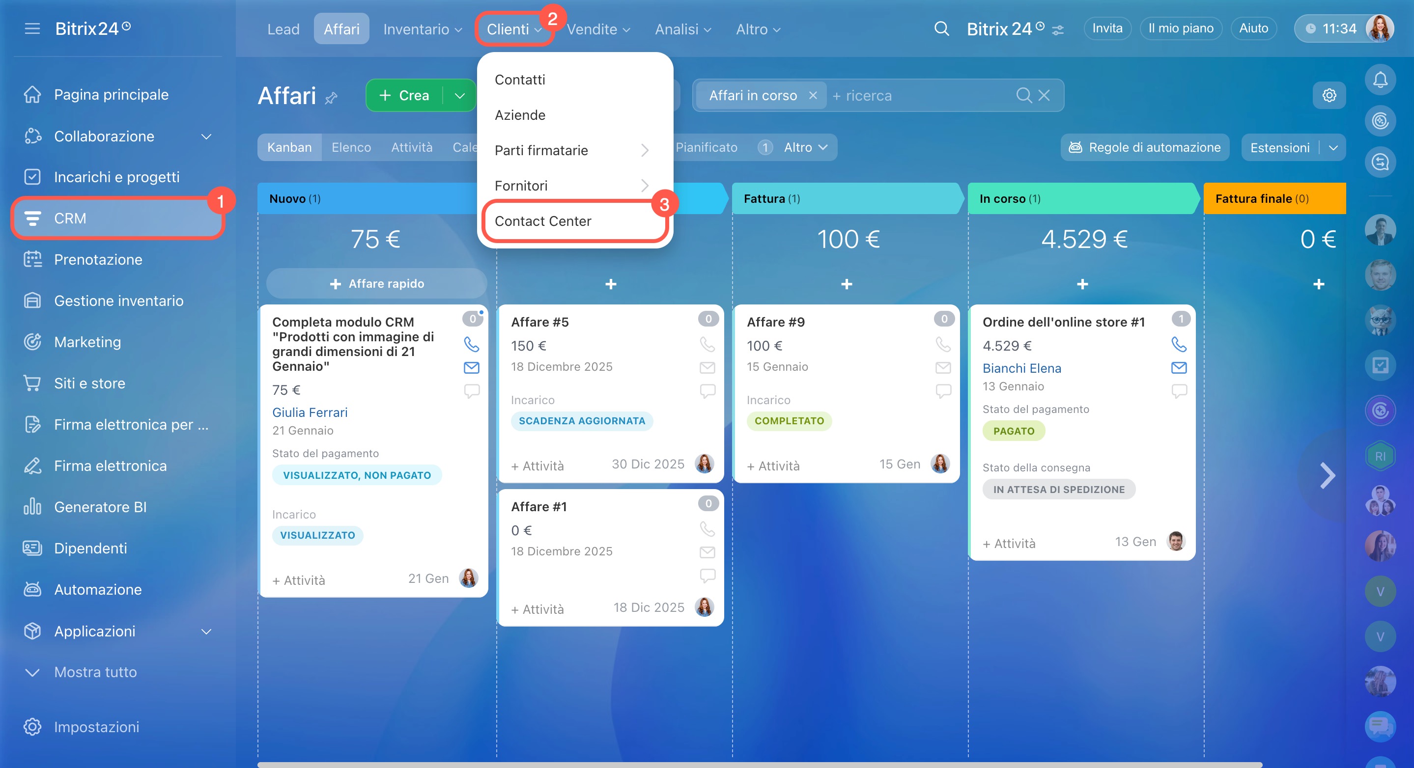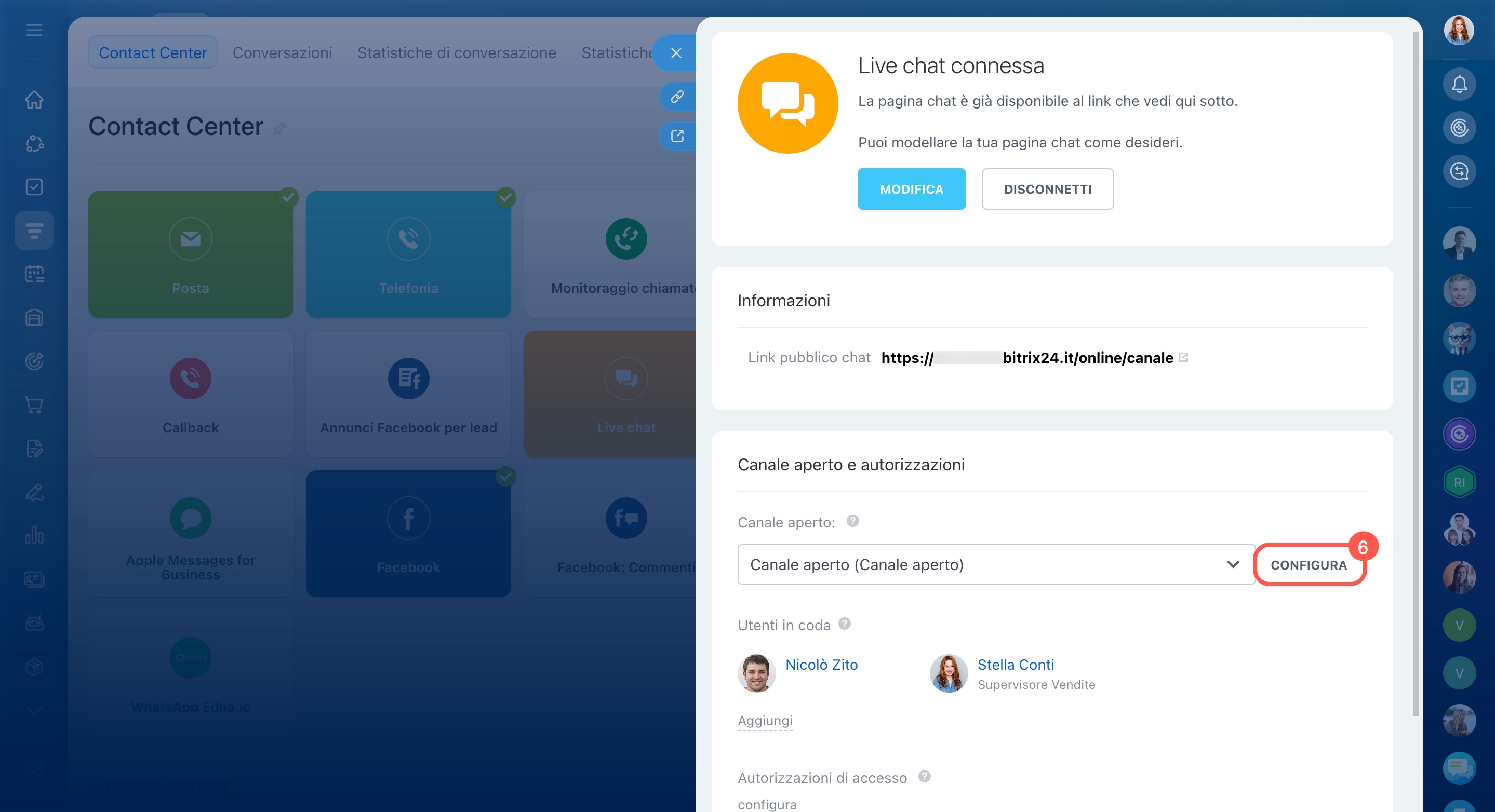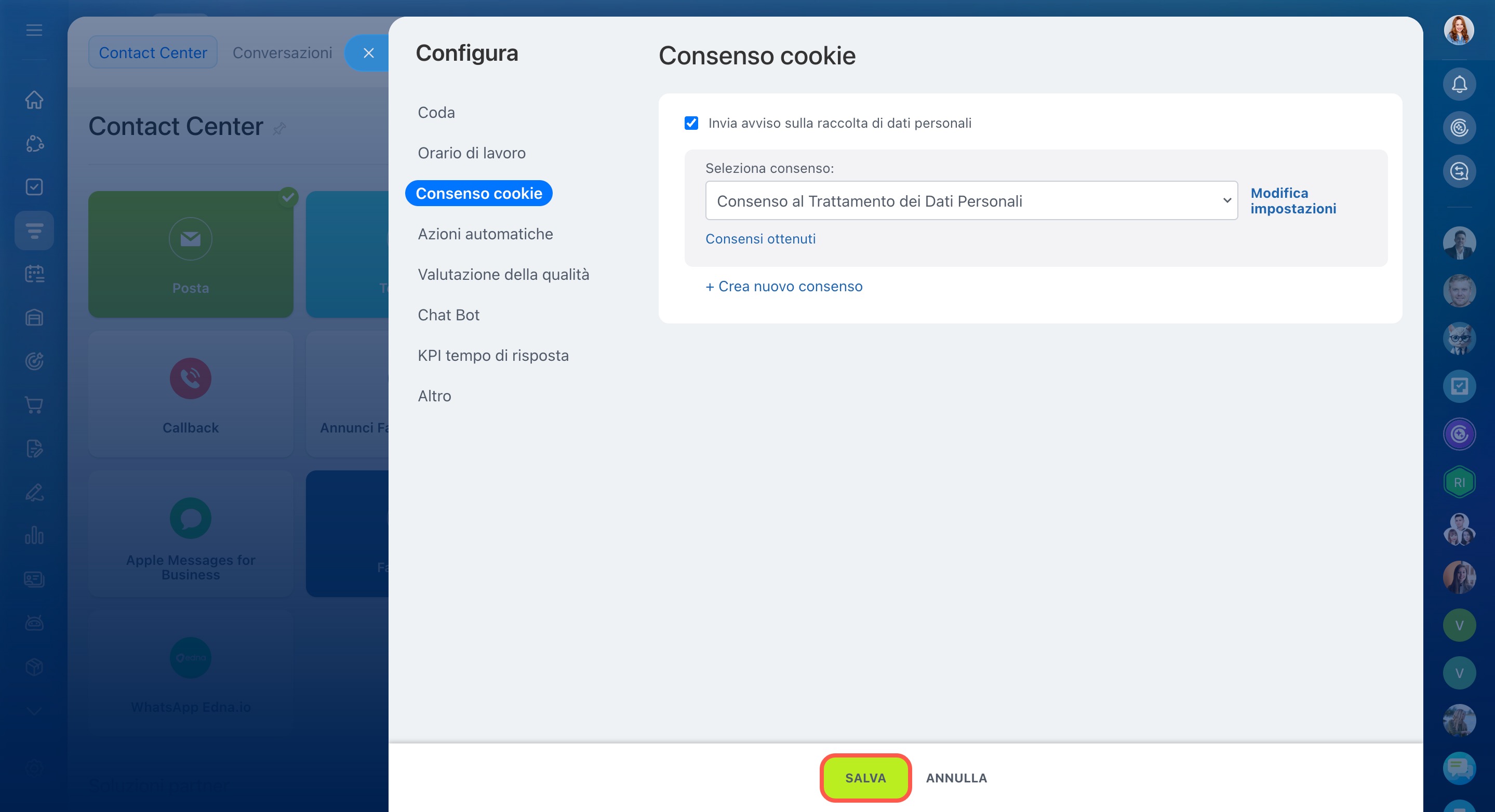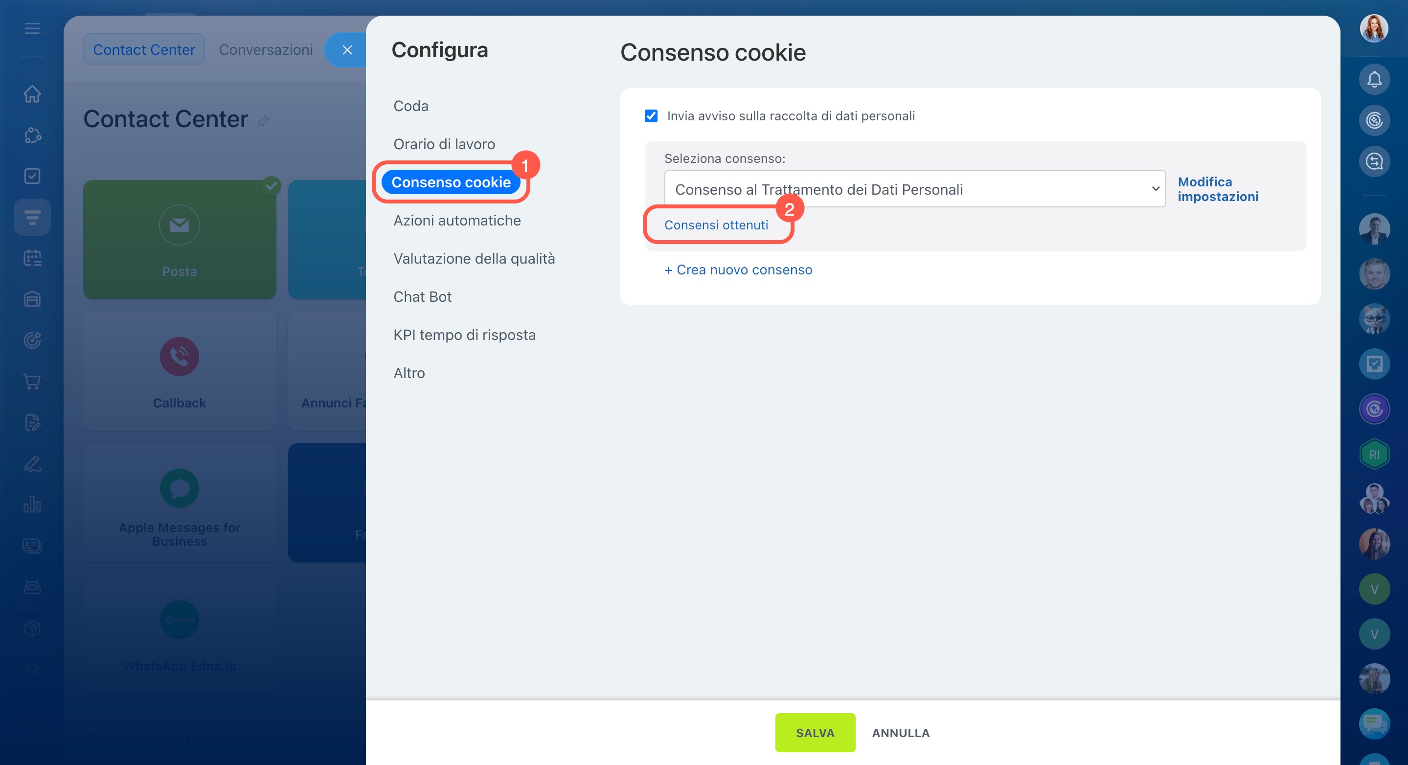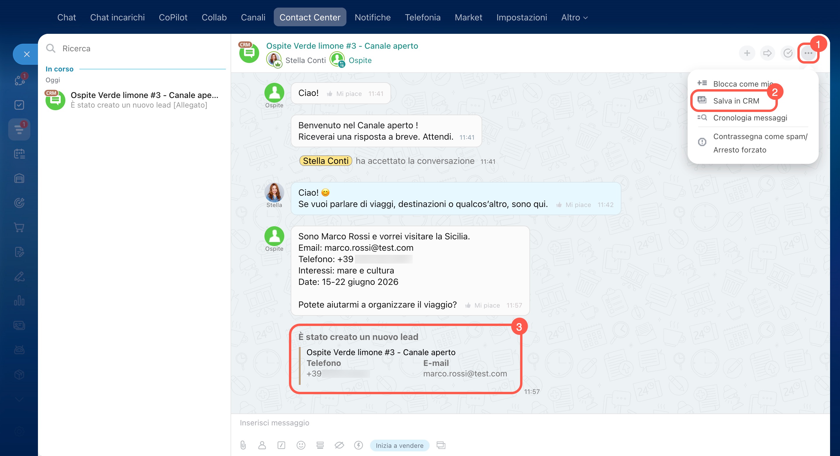 - Vai alla sezione CRM > Clienti > Contact Center.