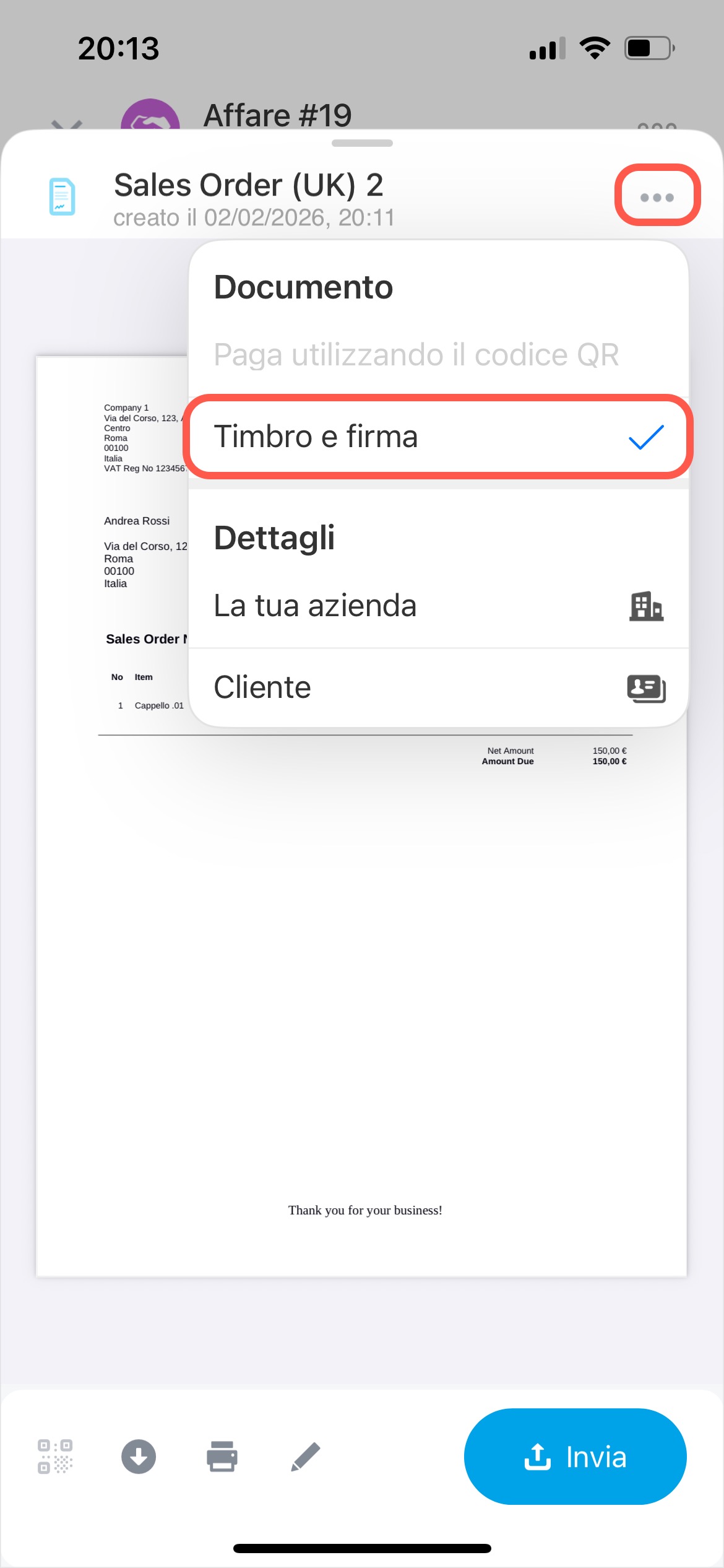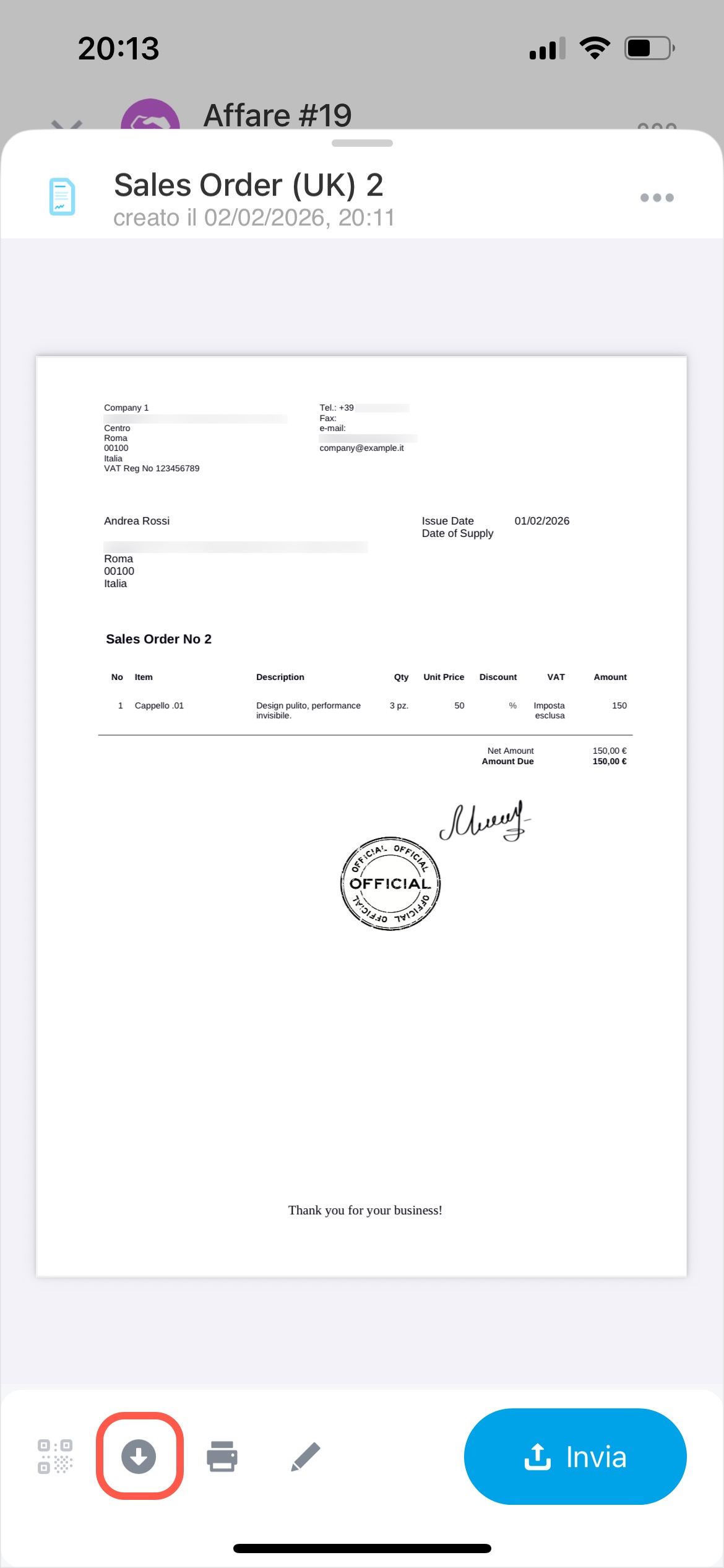 Condividere il documento. Scarica il documento sul telefono o invialo al cliente tramite un’app disponibile sul tuo smartphone.