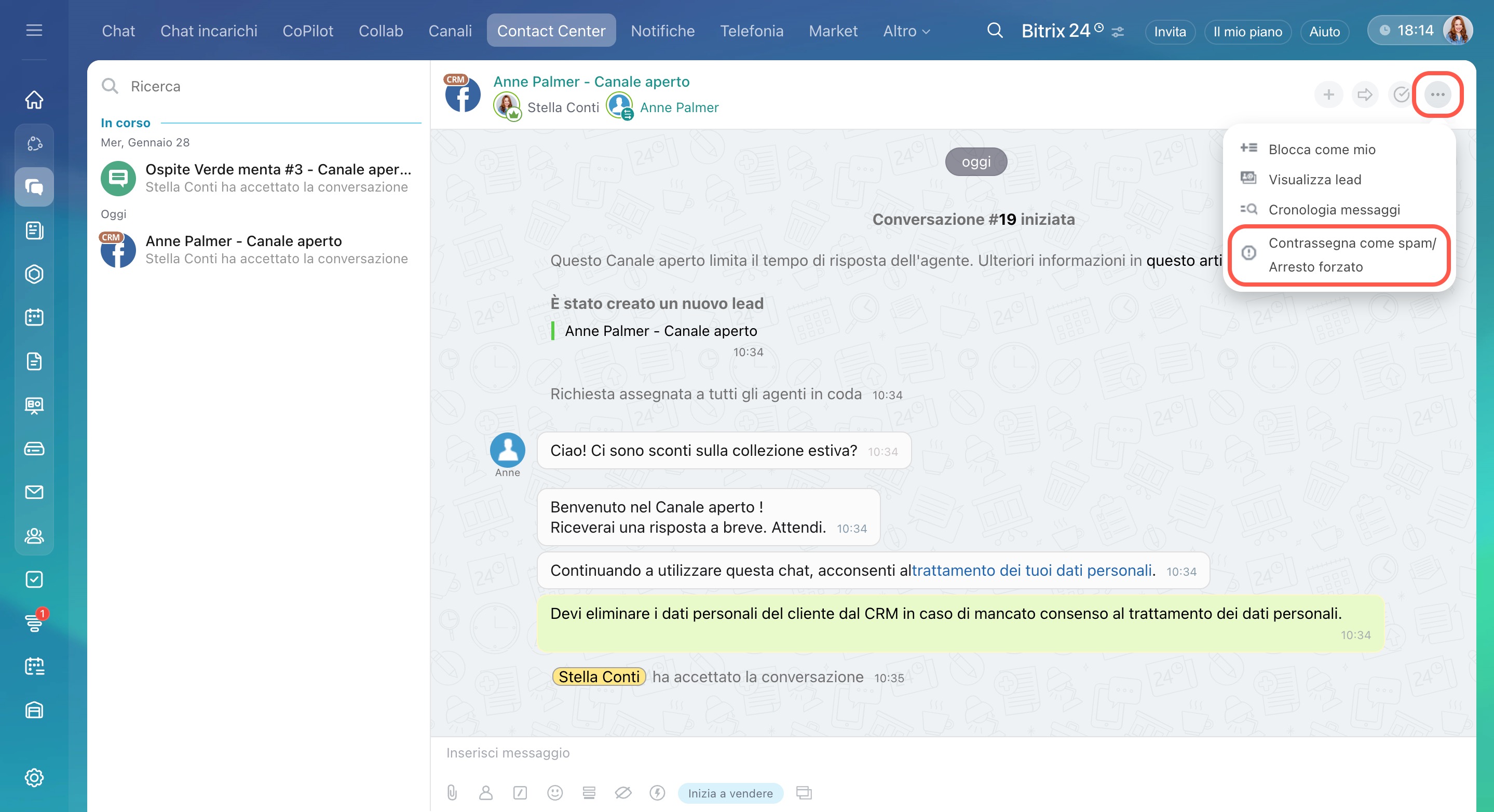 Chiudi la conversazione quando il cliente ha ottenuto le informazioni richieste o se si tratta di spam. Puoi farlo in uno dei seguenti modi: